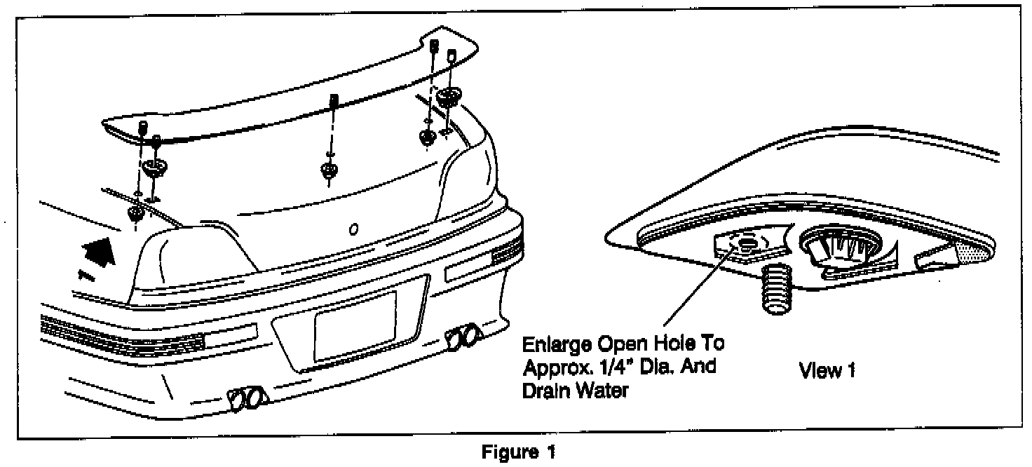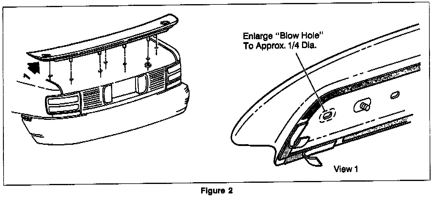 2. Drain water in spoiler by enlarging an open "blow hole" to approximately 1/4 inch diameter.