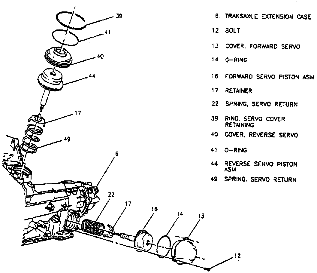 8. Remove servo cover bolts, servo cover, servo piston, sealing ring, apply pin, servo spring retainer and servo spring.