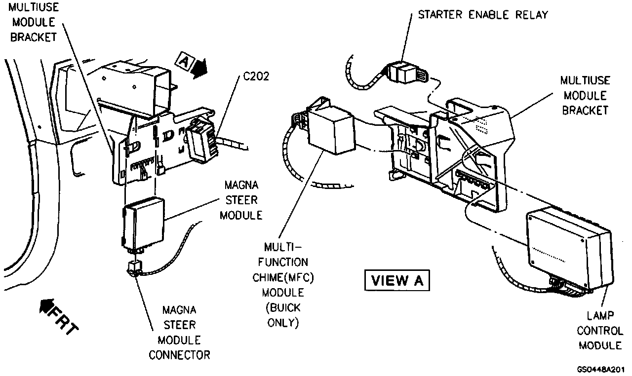 Below I/P, Left Side Of Steering Column, Magna Steer Module Area: