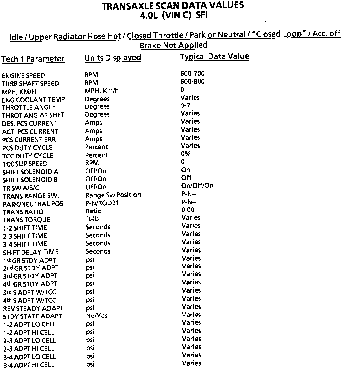 Only the parameters listed below are used in this manual for diagnosis. If a scan tool reads other parameters, the values are not recommended by General Motors for use in diagnosis. If all values are within the range illustrated, refer to Diagnosis by Symptom.