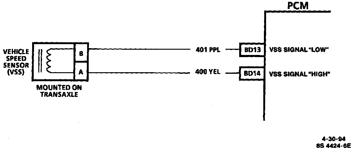 Vehicle speed information is provided to the Powertrain Control Module (PCM) by the Vehicle Speed Sensor (VSS) which is a permanent magnet generator that is mounted in the transaxle. The permanent magnet generator produces a pulsing AC voltage signal whenever vehicle speed is over 5 km/h (3 mph). The AC voltage level and the number of pulses increases with vehicle speed. The PCM then converts the pulsing voltage to mph. The VSS output can also be measured by using a digital voltmeter on the AC scale while rotating the drive wheels.