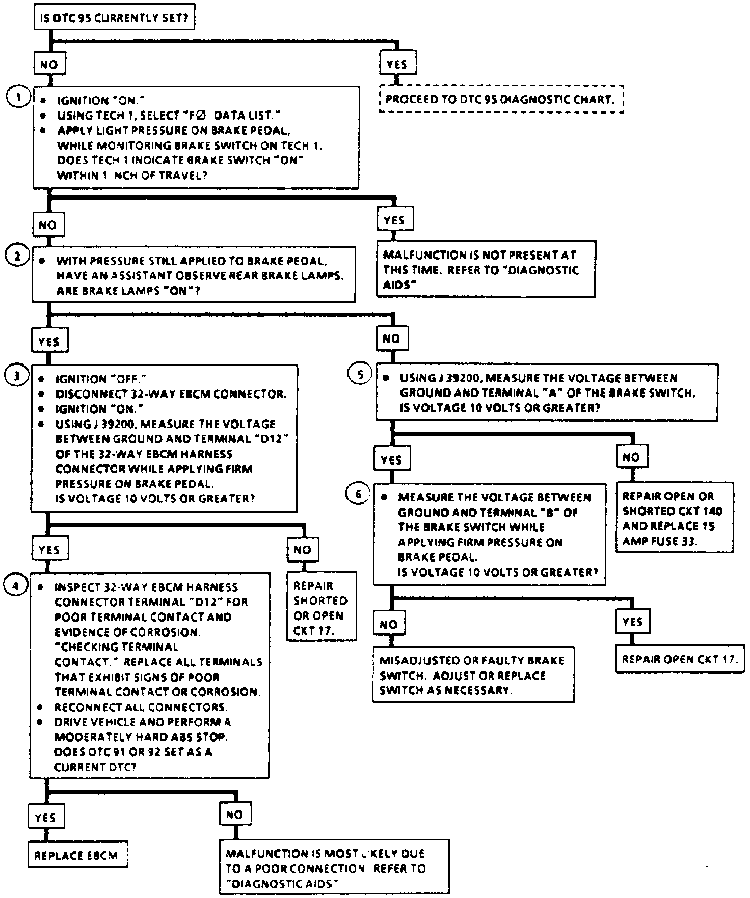 This DTC is run to determine the proper operation of the brake switch. This is important because ABS is activated when the brake switch is "ON." If the brake switch is "OFF," ABS will never be activated. Since this malfunction is difficult to detect under normal braking conditions, this malfunction is only detected when ABS is required.