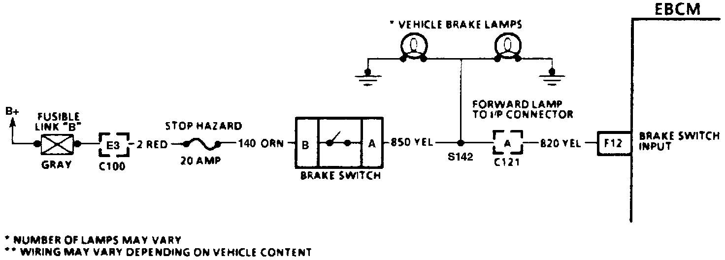 2. Indicates if an open circuit exists in the brake switch or brake lamp circuitry.