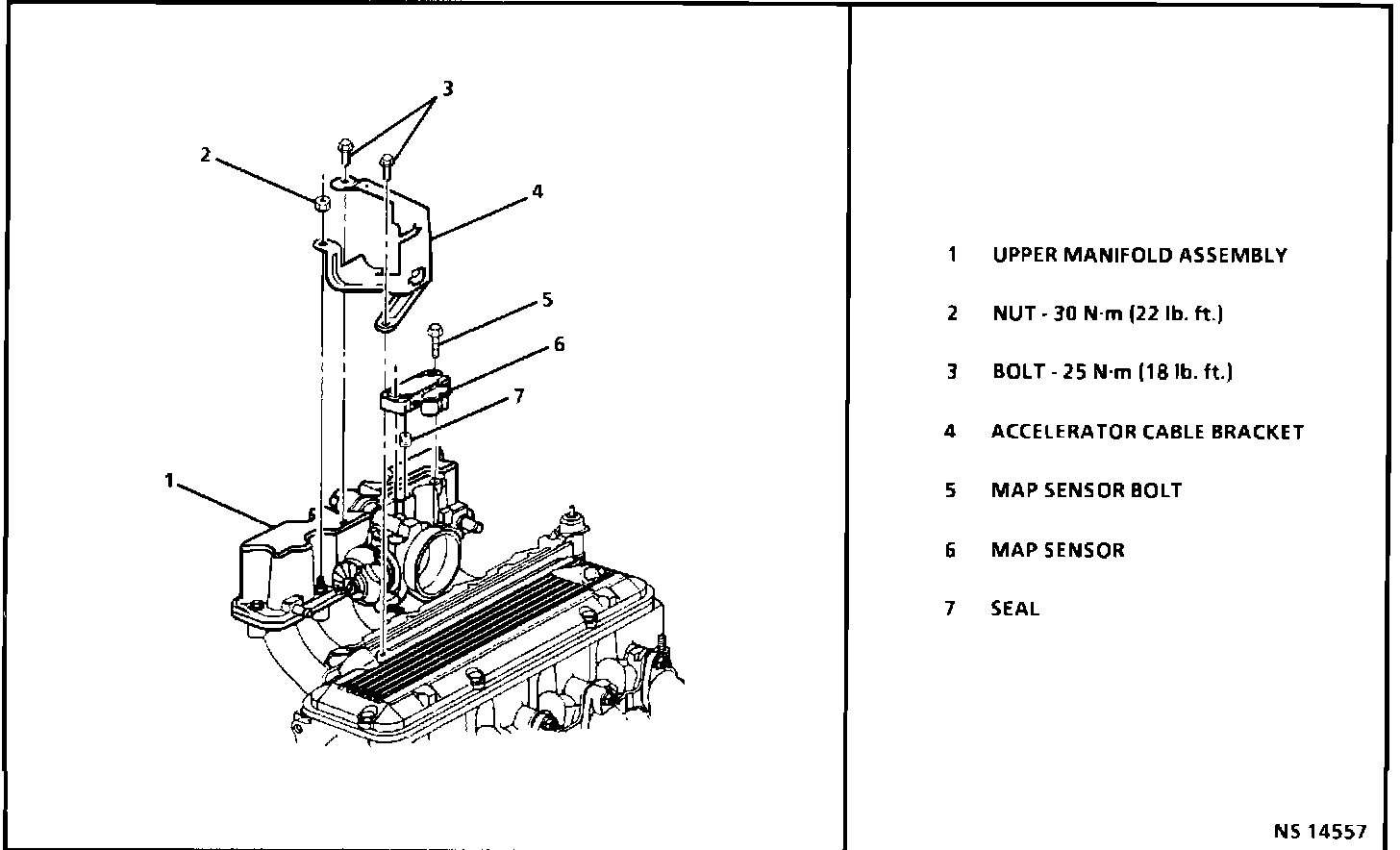 ^ Accelerator cable bracket bolts to 25 Nm (18 lb. ft.)