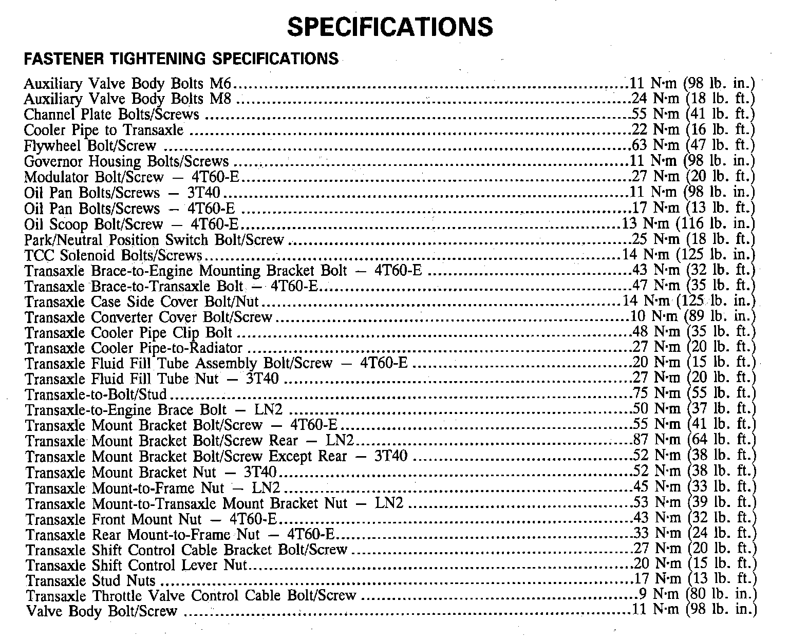 Fastener Tightening Specifications