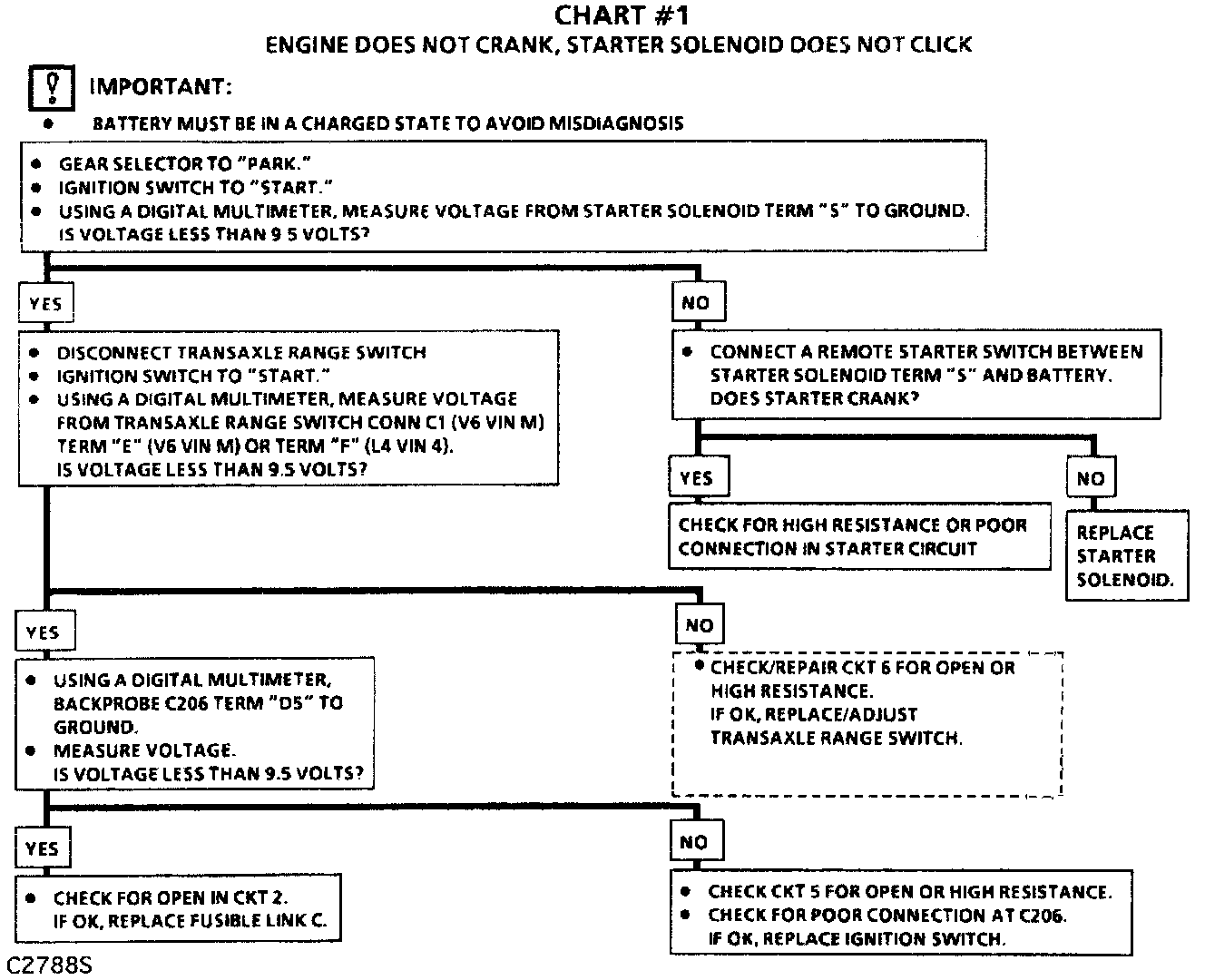 Chart #1 Engine Does Not Crank, Starter Solenoid Does Not Click