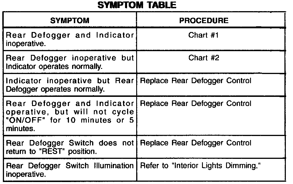 A Symptom Table - Rear Window Defogger & Heated Mirrors (SSE & SSEI Models)