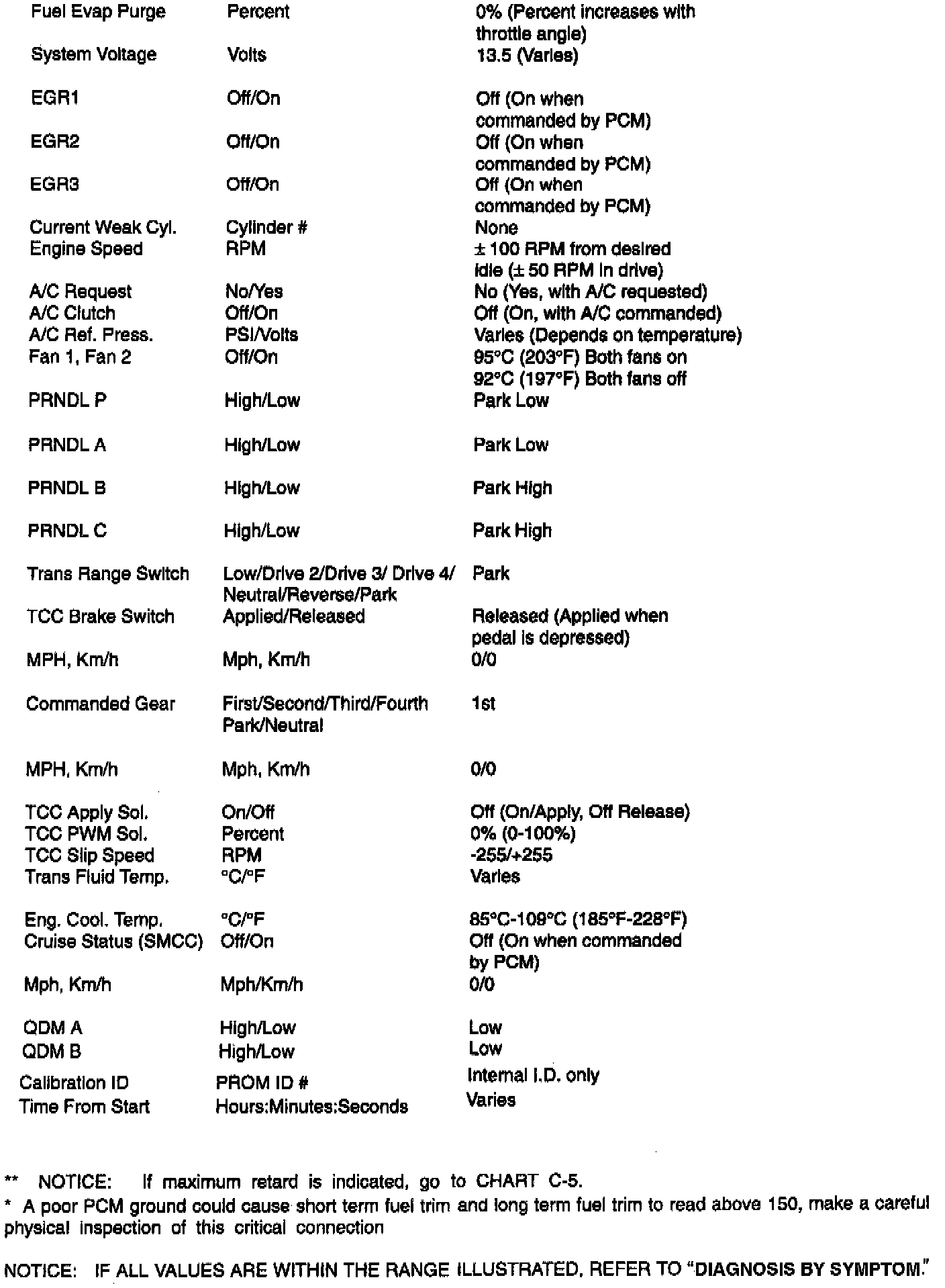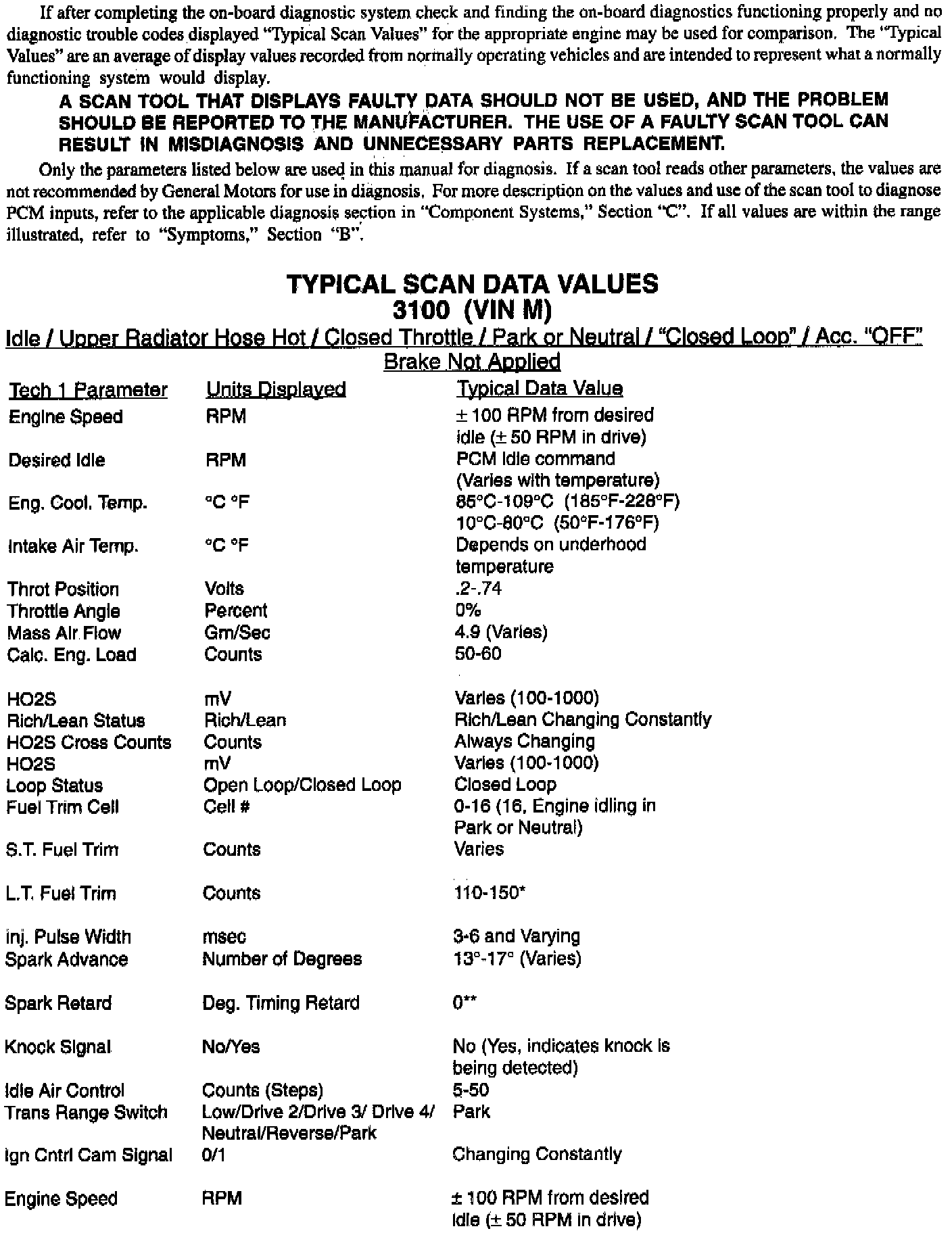 Typical Scan Values (2 Of 2):