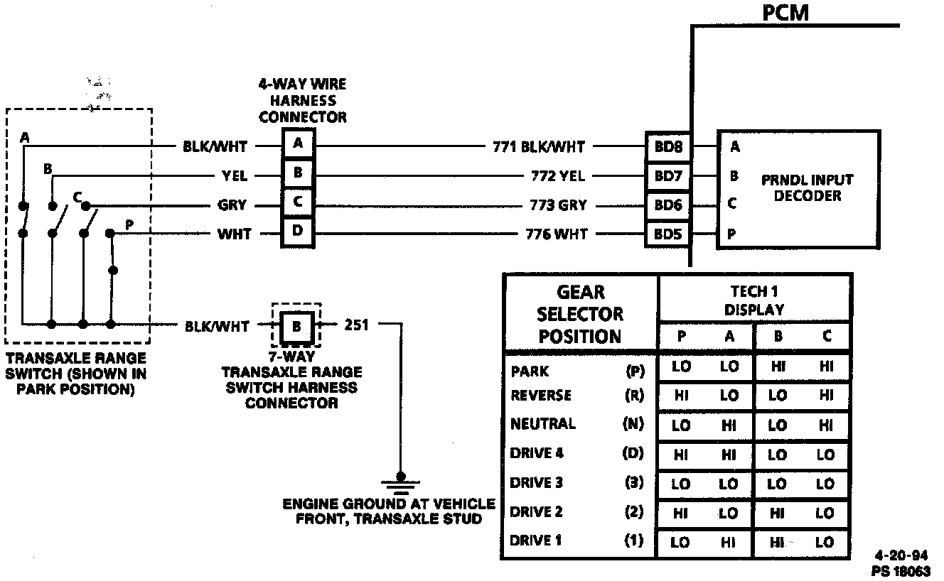 Transaxle Range Switch Wiring Schematic: