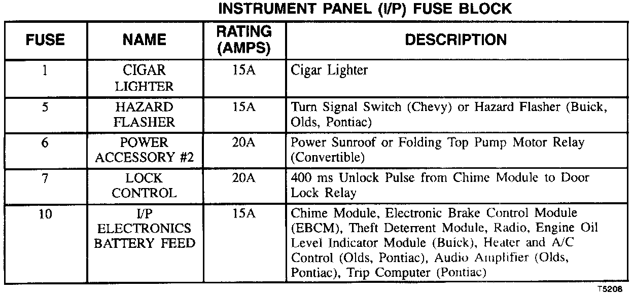 Instrument Panel (I/P) Fuse Block (Part 3 Of 3):