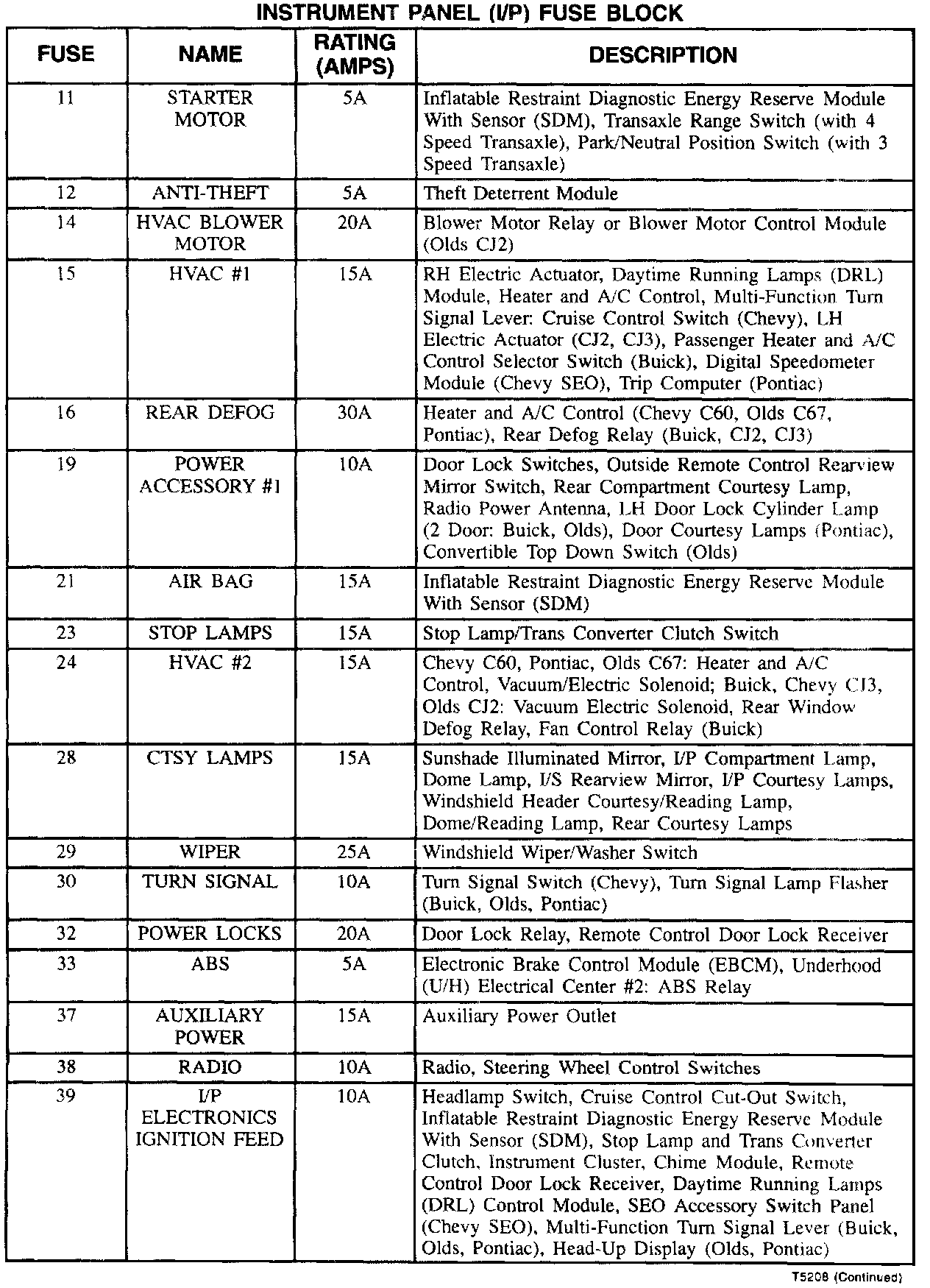 Instrument Panel (I/P) Fuse Block (Part 2 Of 3):