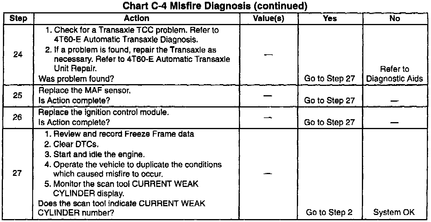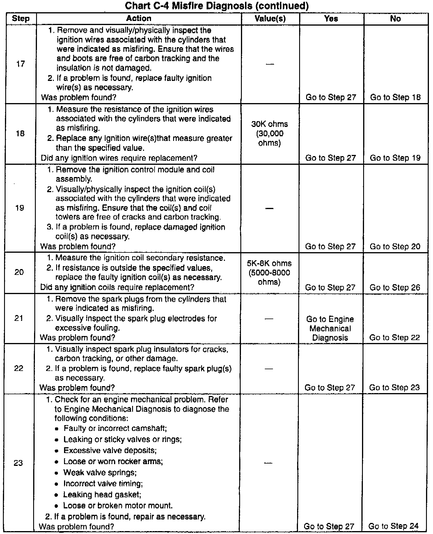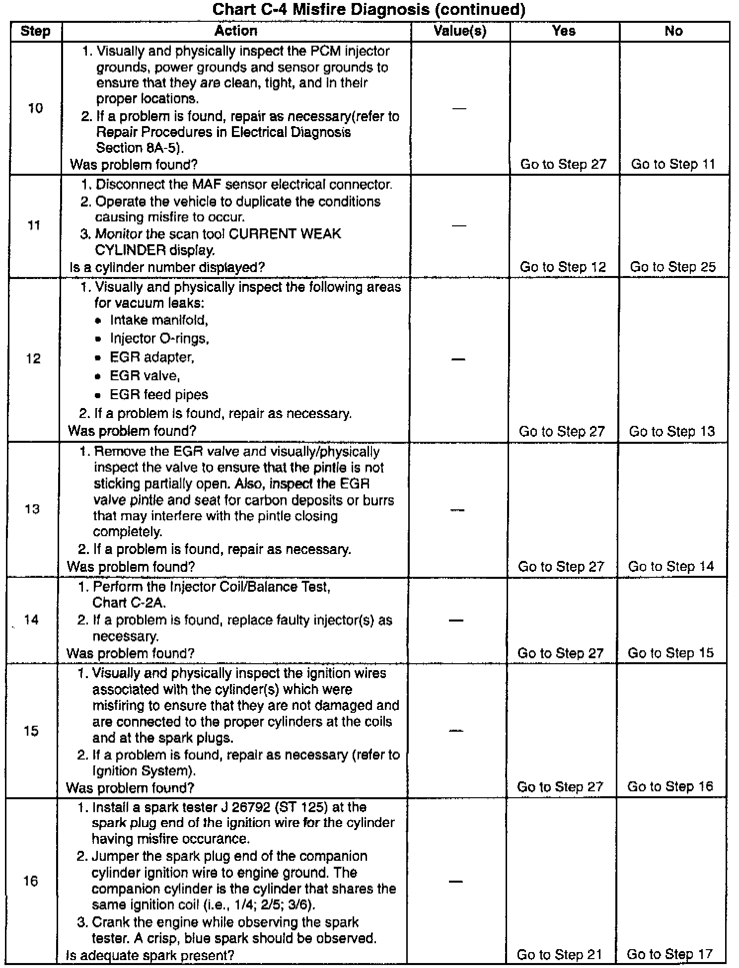Section 6E3 - Driveability and Emissions - Revised Misfire Diagnosis Chart CA