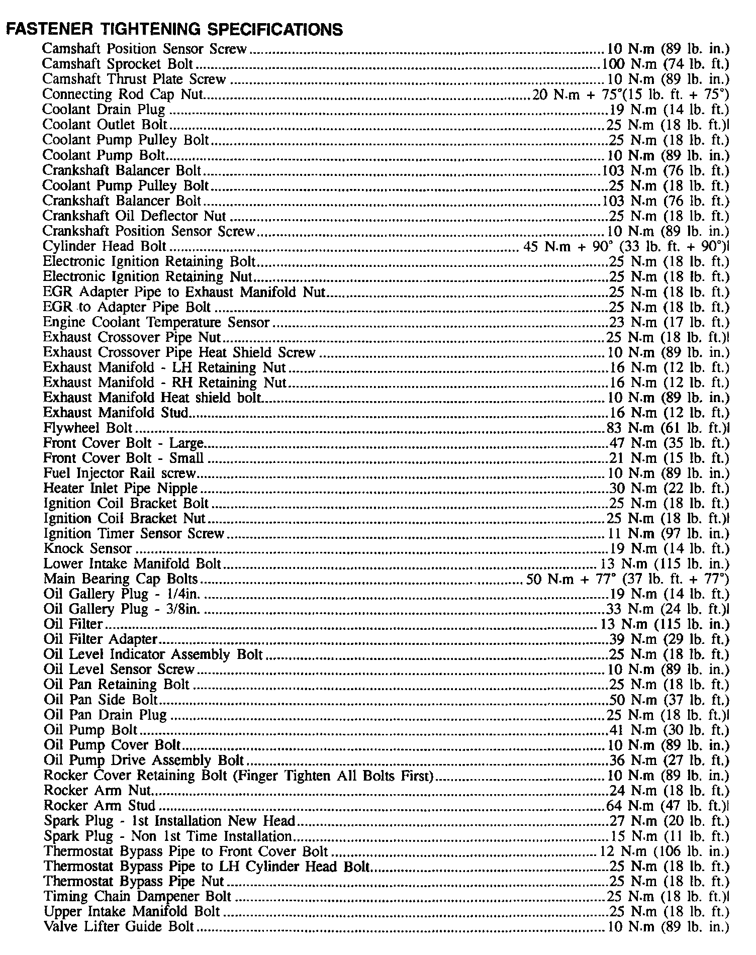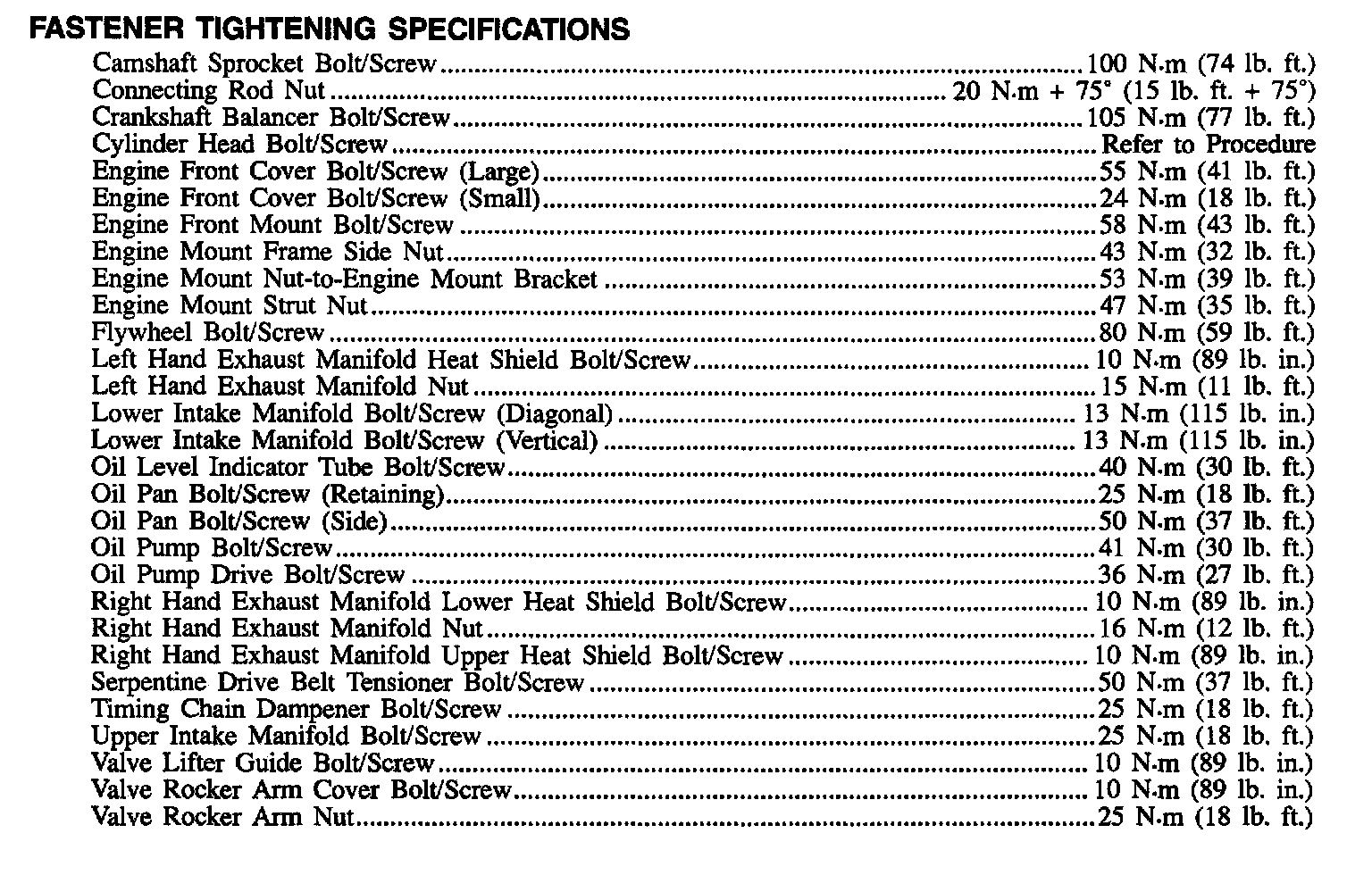 Fastener Tightening Specifications - Engine