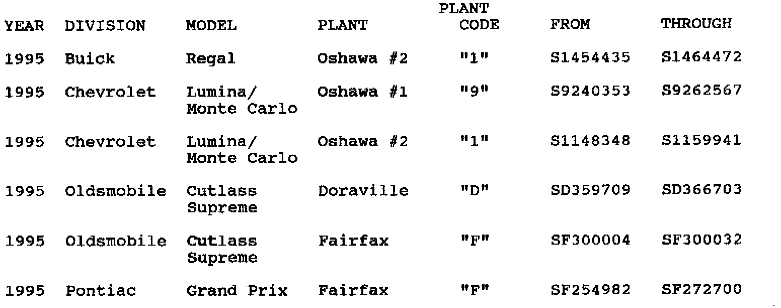 Involved are all 1995 Buick Regal, Chevrolet Lumina/Monte Carlo, Oldsmobile Cutlass Supreme and Pontiac Grand Prix model vehicles built within the VIN breakpoints as shown.