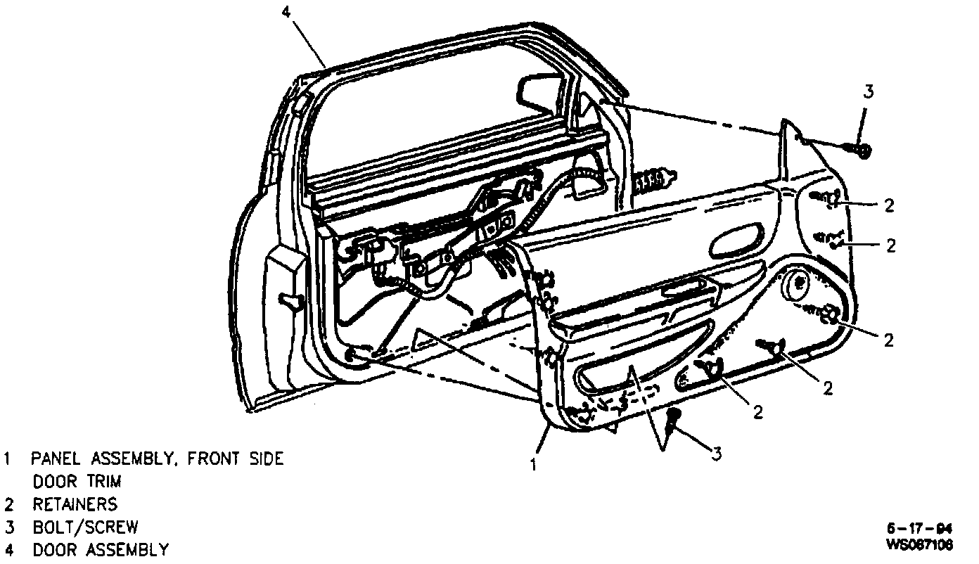 3. Power window and door switch assembly, if present.