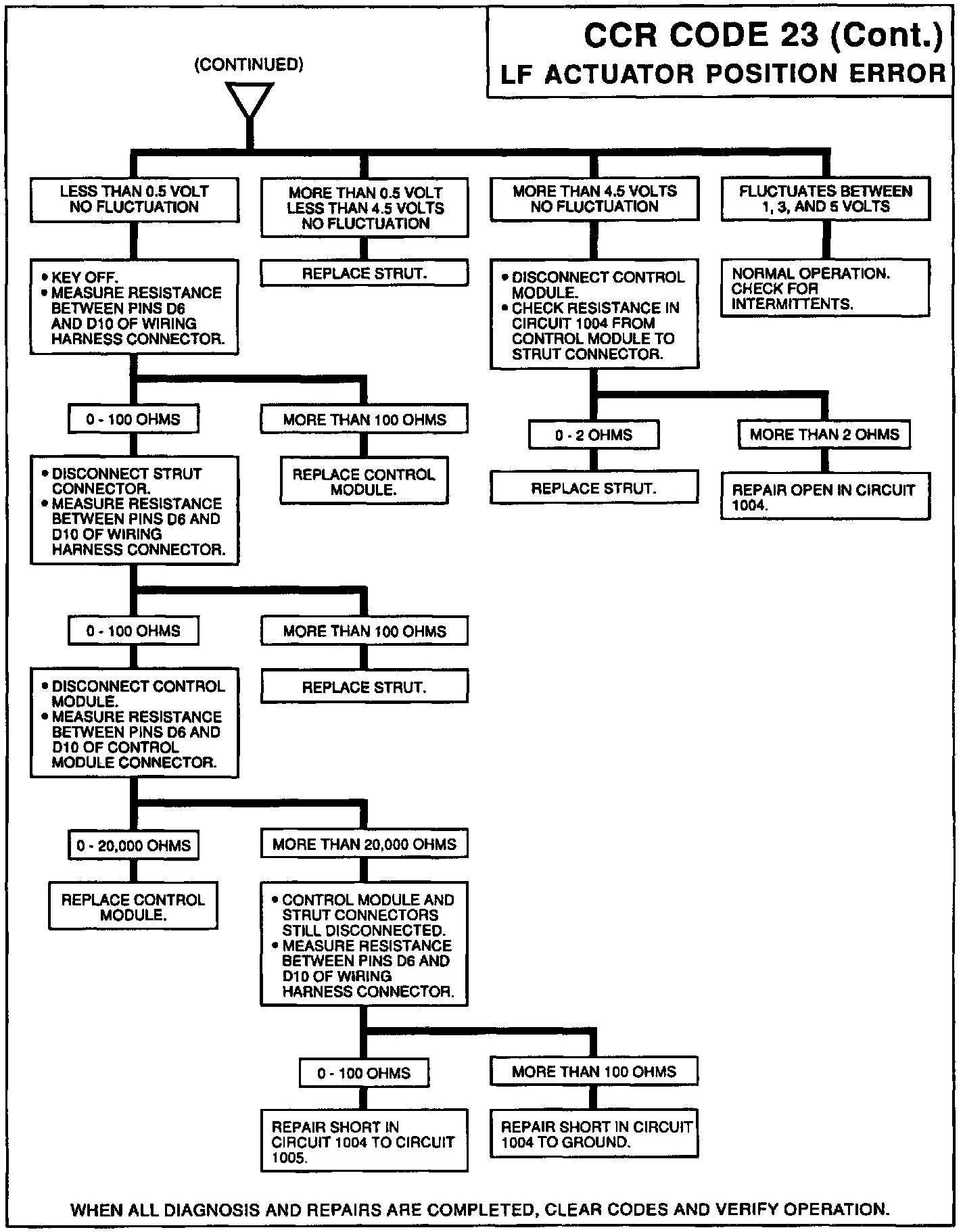 A mismatch of the commanded feedback signal and the actual feedback signal which occurs after the 6 seconds will not be detected as an error. The actuators will not be repositioned until the CCR system commands a new actuator position as a result of new speed / lateral accelerator switch inputs or a 3 minute retest.