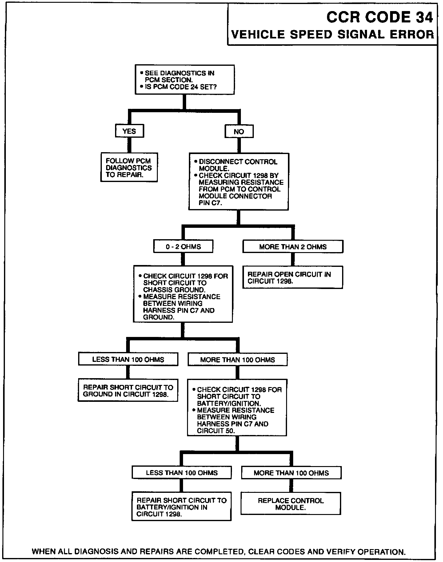 A vehicle speed signal error occurs when the Control Module detects 5 or more transitions in the lateral accelerator switch input after 20 or more seconds without a vehicle speed input. If a fault is detected, the system will set error code 34 and activate the error lamp.