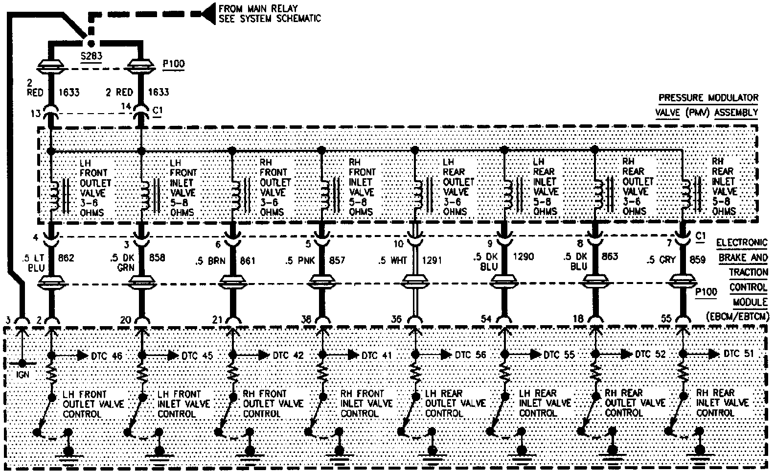 DTC 41, 42, 46, 51, 52, 55 & 56 Inlet/Outlet Valve Circuit Open Or Shorted (part 1 Of 2):