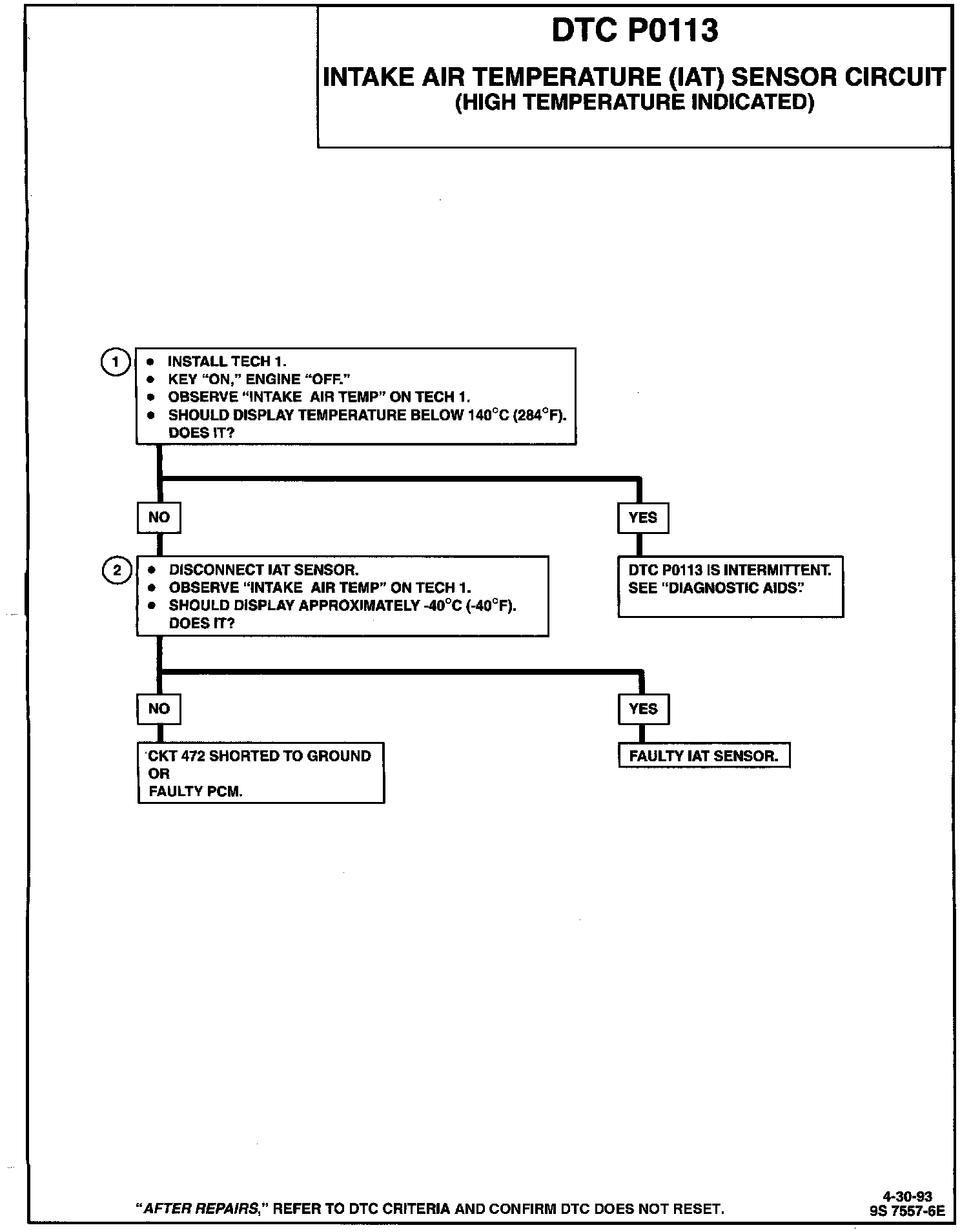 DTC P0113 Intake Air Temperature Sensor (IAT) Diagnostic Chart: