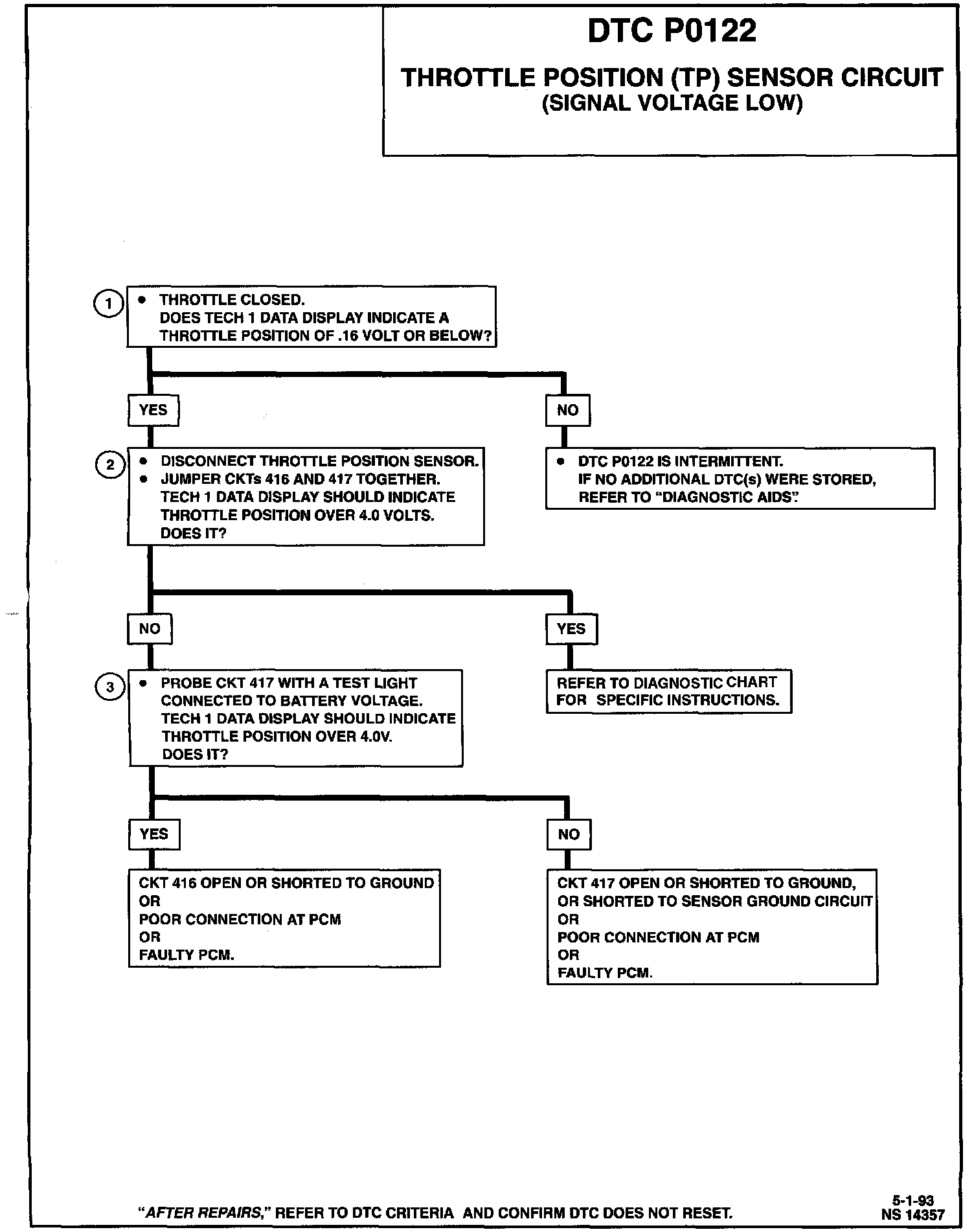 DTC P0122 Throttle Position (TP) Sensor Diagnostic Chart: