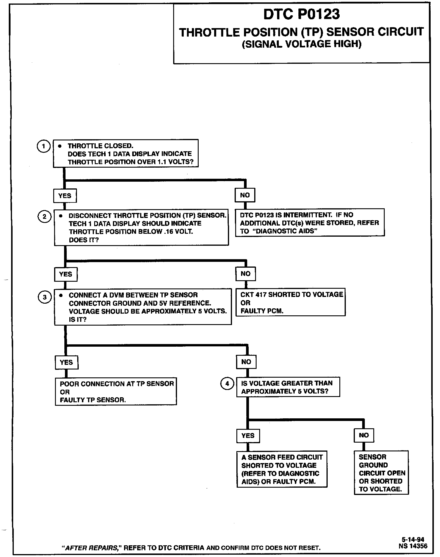 DTC P0123 Throttle Position (TP) Sensor Diagnostic Chart: