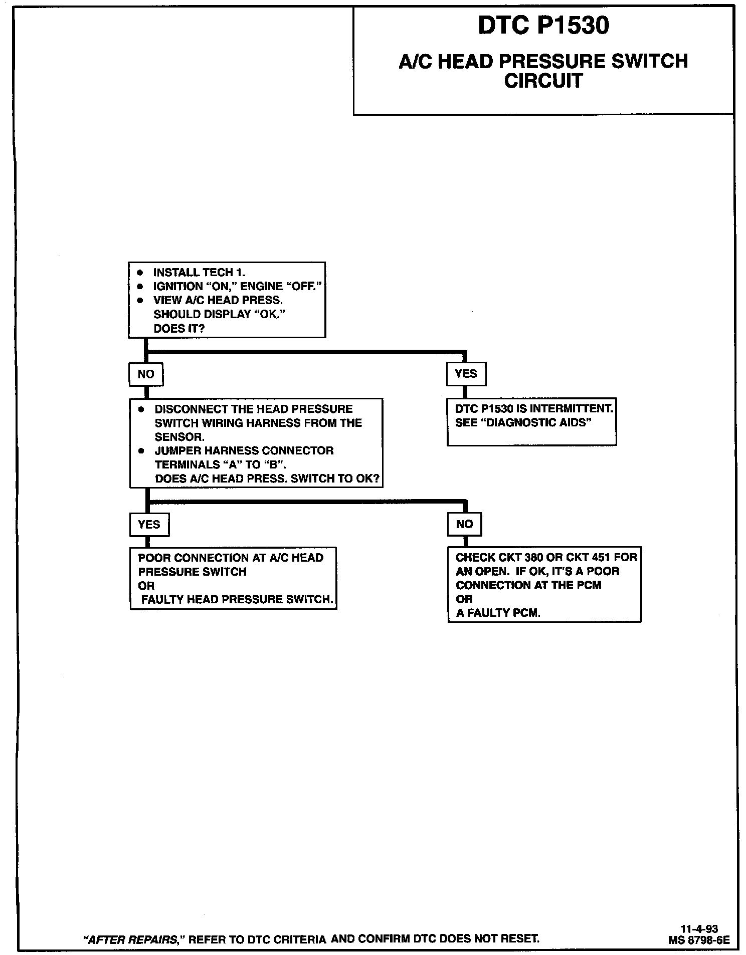 DTC P1530 A/C Head Pressure Switch Diagnostic Chart: