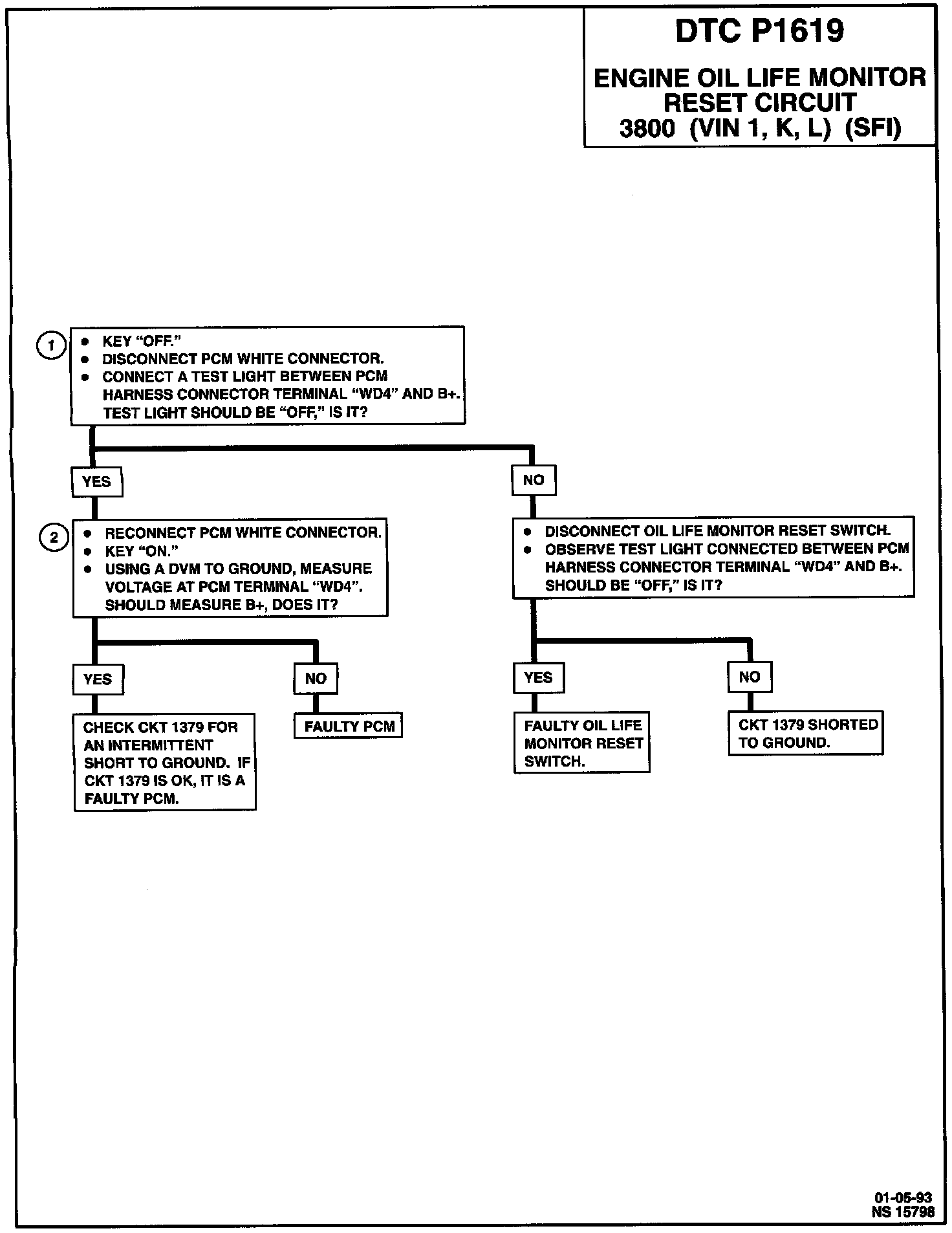DTC P1619 Engine Oil Life Monitor Reset Switch Diagnostic Chart: