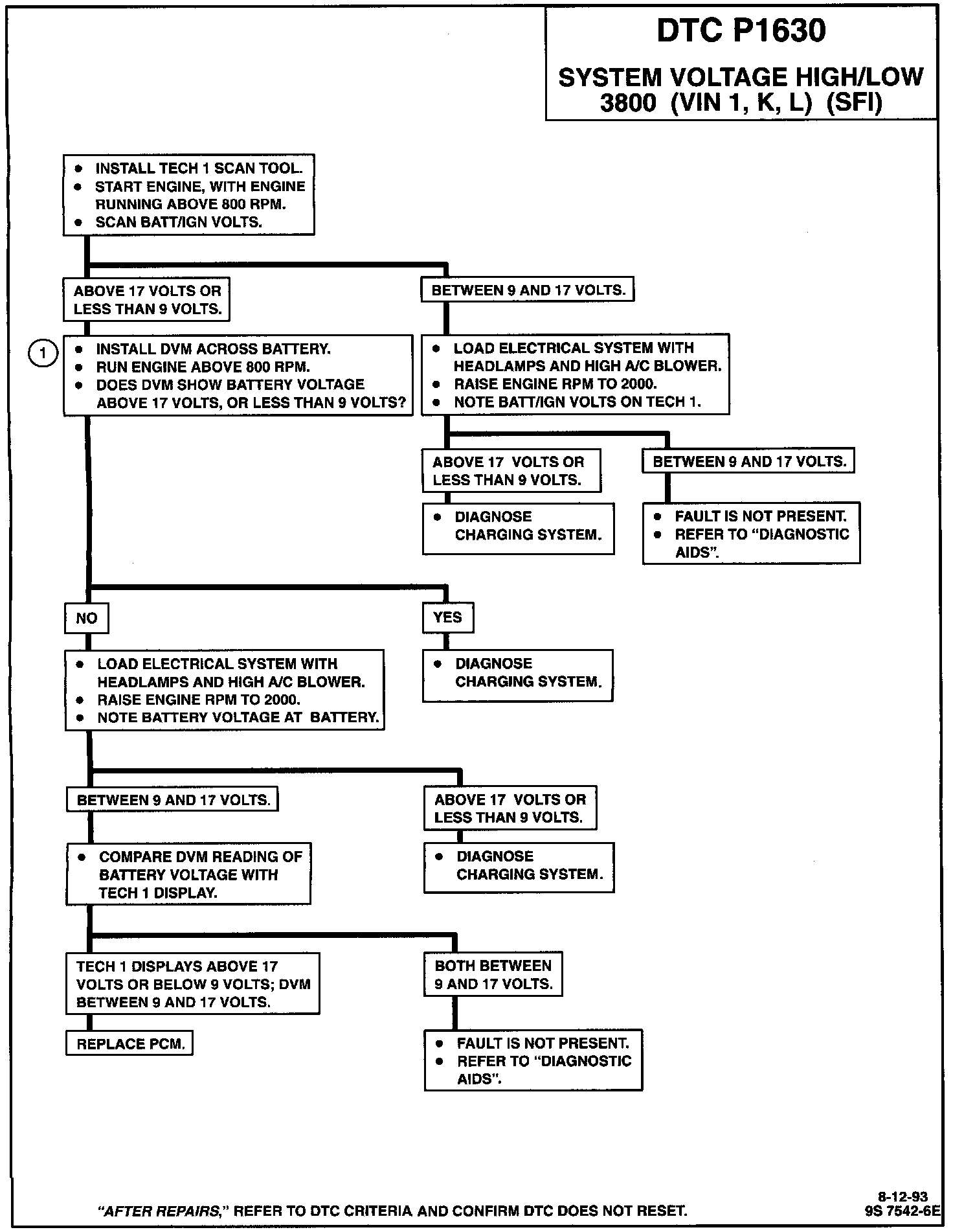 DTC P1630 System Voltage High/Low Diagnostic Chart: