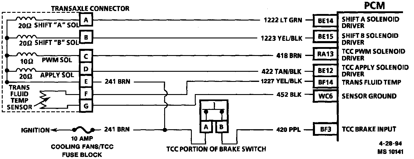 The 4T60E transaxle uses shift solenoid A and shift solenoid B to control shifting. Use the supplied shift solenoid operating sequence chart for solenoid operating sequence. The Powertrain Control Module (PCM) monitors the Throttle Position (TP) sensor, vehicle speed and engine speed (RPM) to determine the correct shift points.