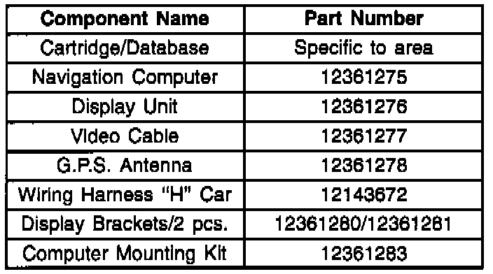 1st Kit Part: # 12344916 - Navigation computer display unit, video cable, GPS Antenna, and the Owner's Manual.