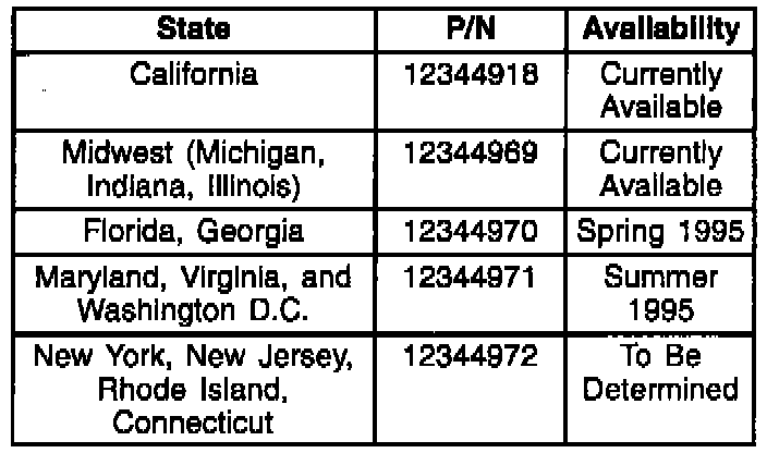 The Guidestar Navigation/Information System will have a region/state rollout. It was announced for sale in California on September 28, 1994. The midwest database includes the states of Michigan, Indiana, and Illinois and was released on November 21, 1994. Additional areas will be announced as the database becomes available.