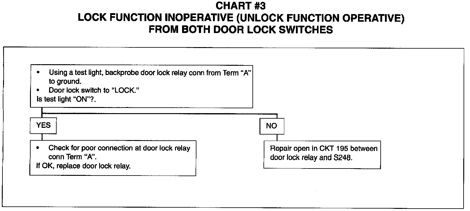 Chart #3 Lock Function Inoperative From Both Door Lock Switches: