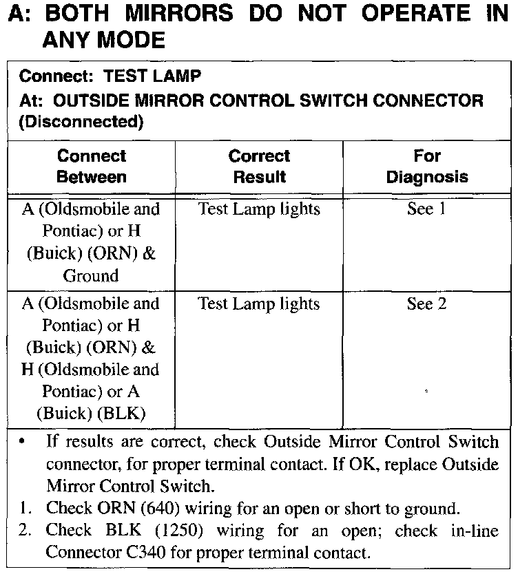 Test A: Both Mirrors Do Not Operate In Any Mode