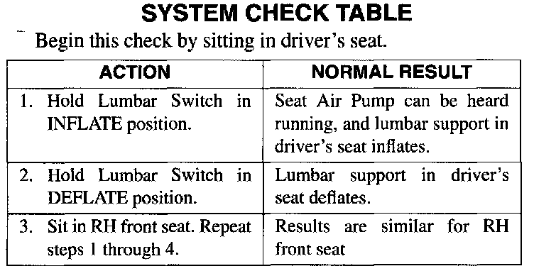 System Check - Lumbar Seats