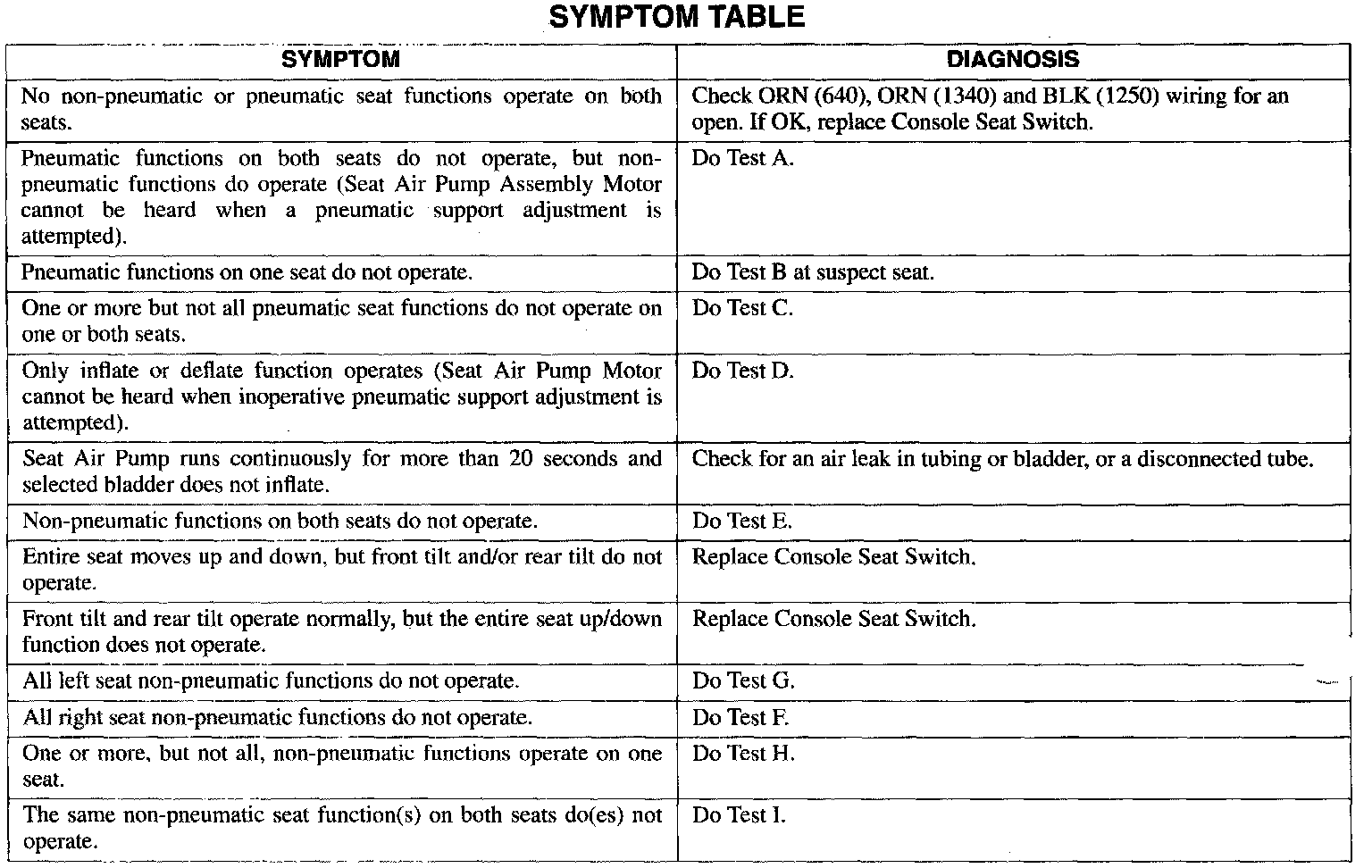A Symptom Table - Sport Seats