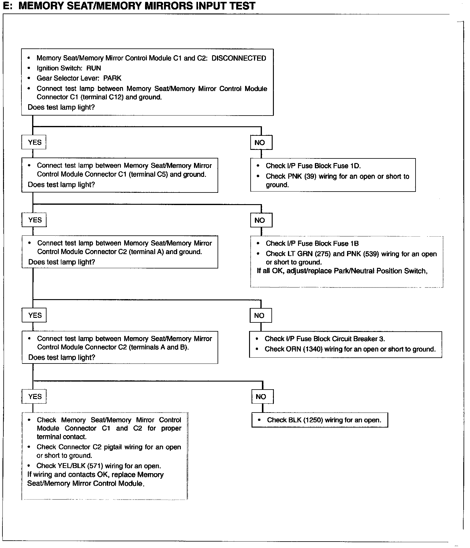 E: Memory Seat/Memory Mirrors Input Test: