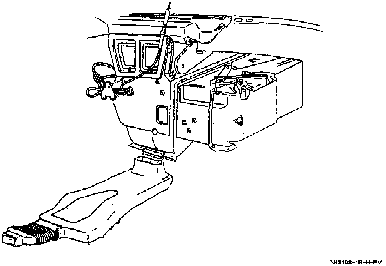 4. Screws and nut attaching air distributor assembly to front of dash, and air distributor assembly from vehicle.