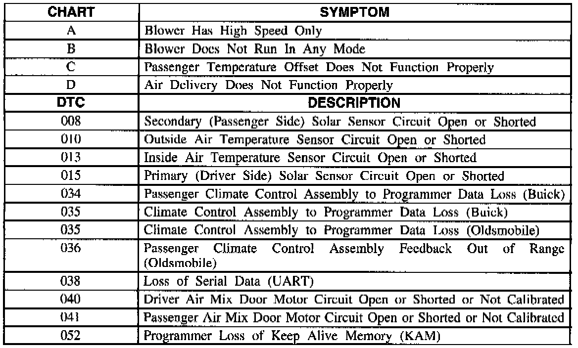 Diagnostic Trouble Code (DTC) Symptom Table With CJ2 Air Conditioning: