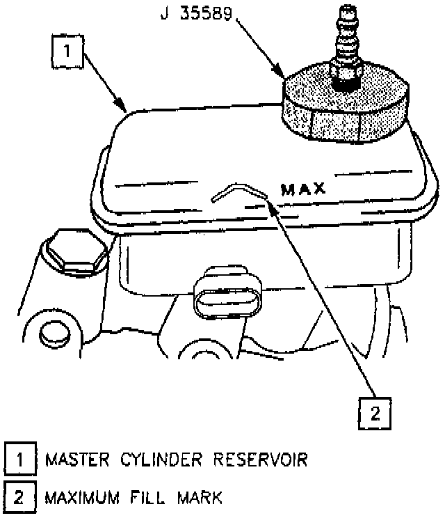 2. Install J 35589 bleeder adapter to the master cylinder.
