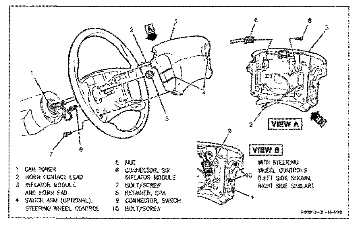4. Electrical connectors to steering wheel control switch wiring, if equipped.