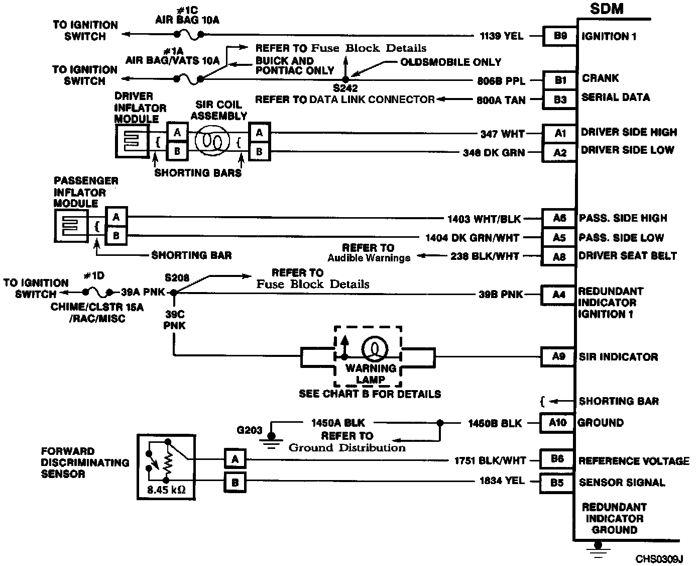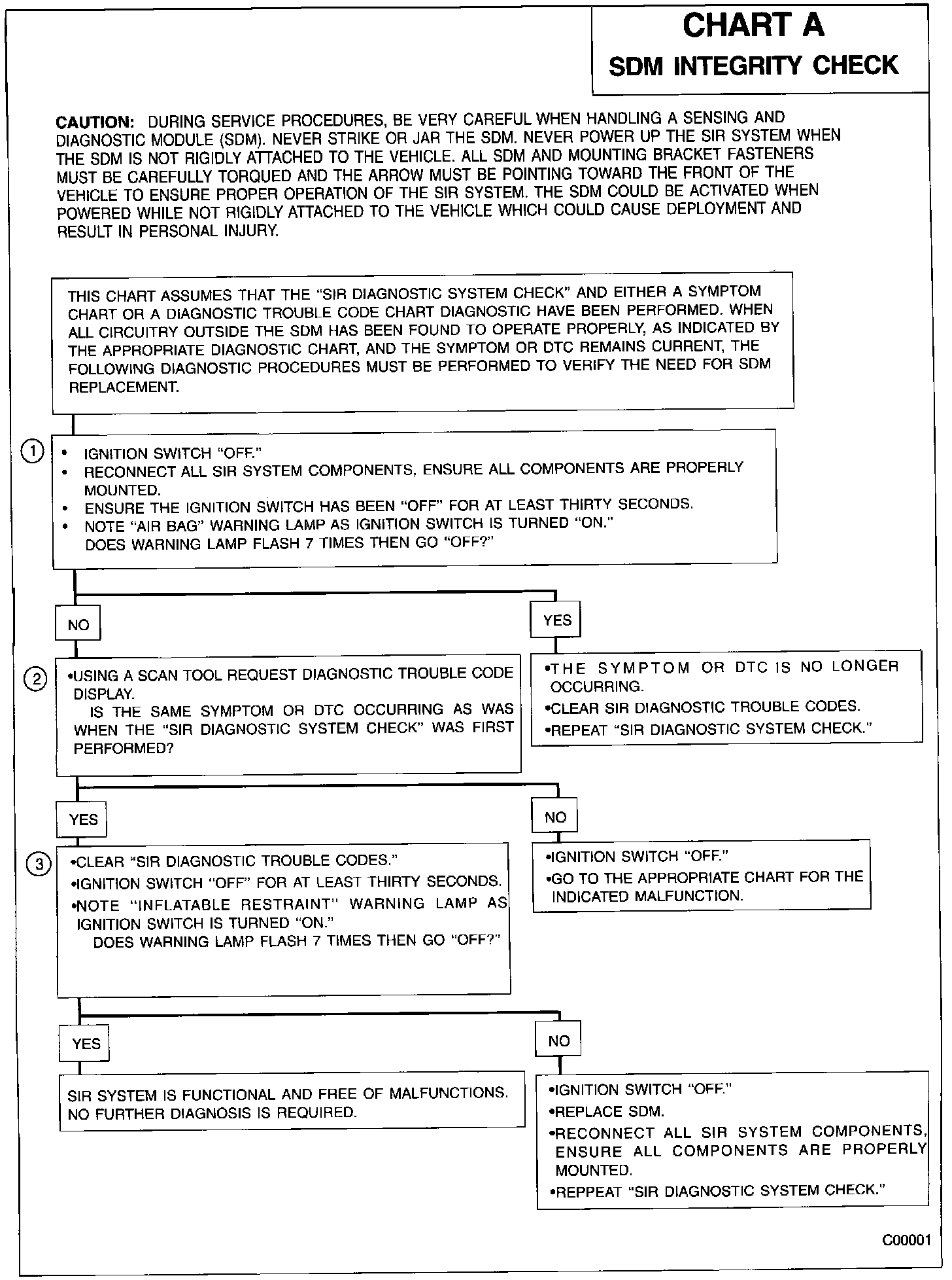 3. When all circuitry outside the SDM has been found to operate properly, as indicated by the appropriate diagnostic chart, then and only then should the SDM be replaced.