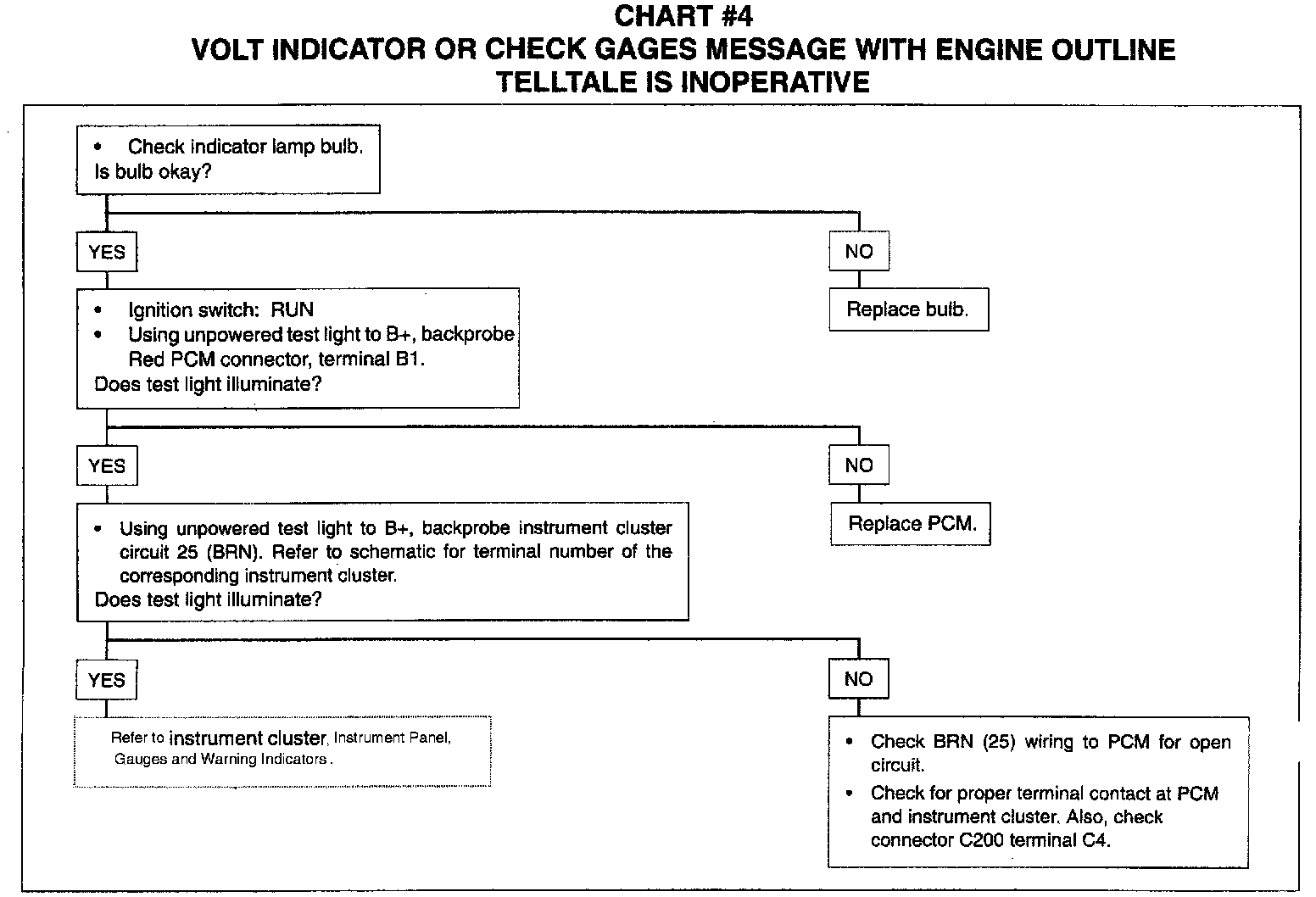 Chart #4 Volt Indicator Or Check Gages Message With Engine Outline Telltale Is Inoperative: