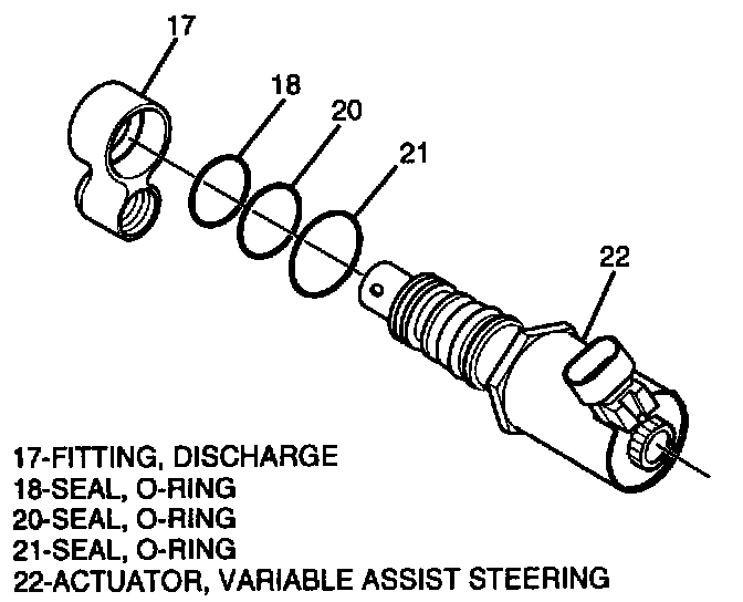 1. O-Ring seals (18, 20, and 21) on Variable Assist Steering actuator.