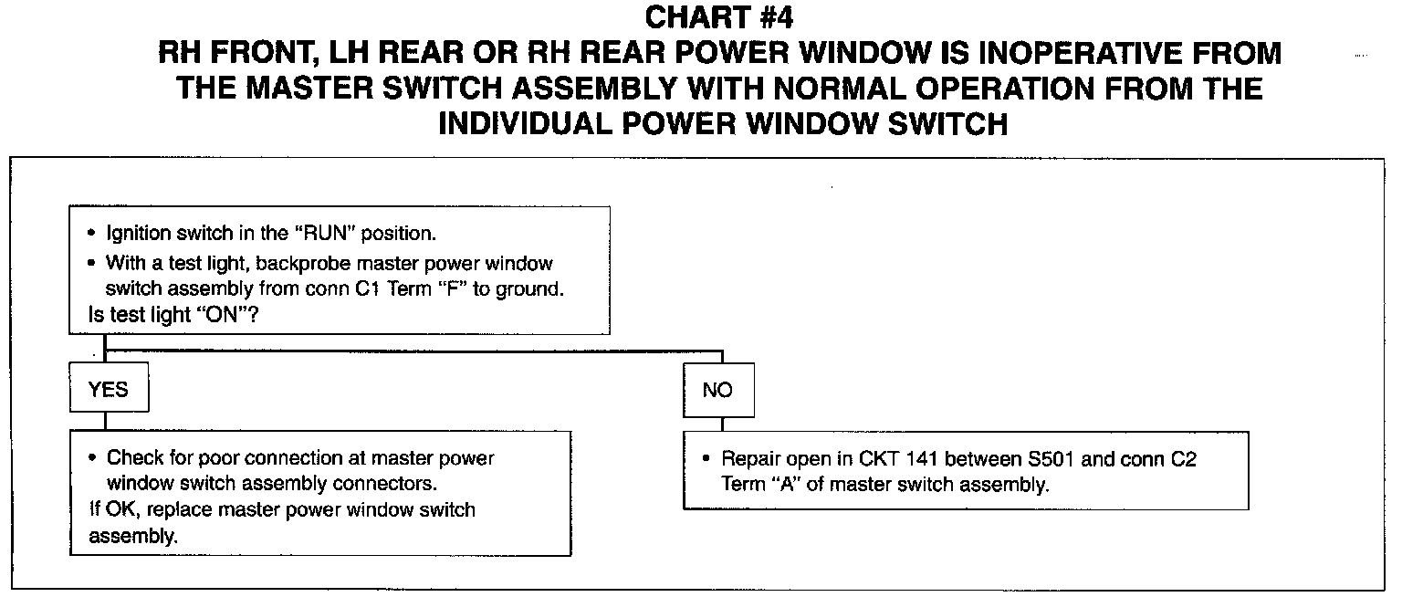 Chart #4 RH Front, LH Rear Power Window Is Inoperative