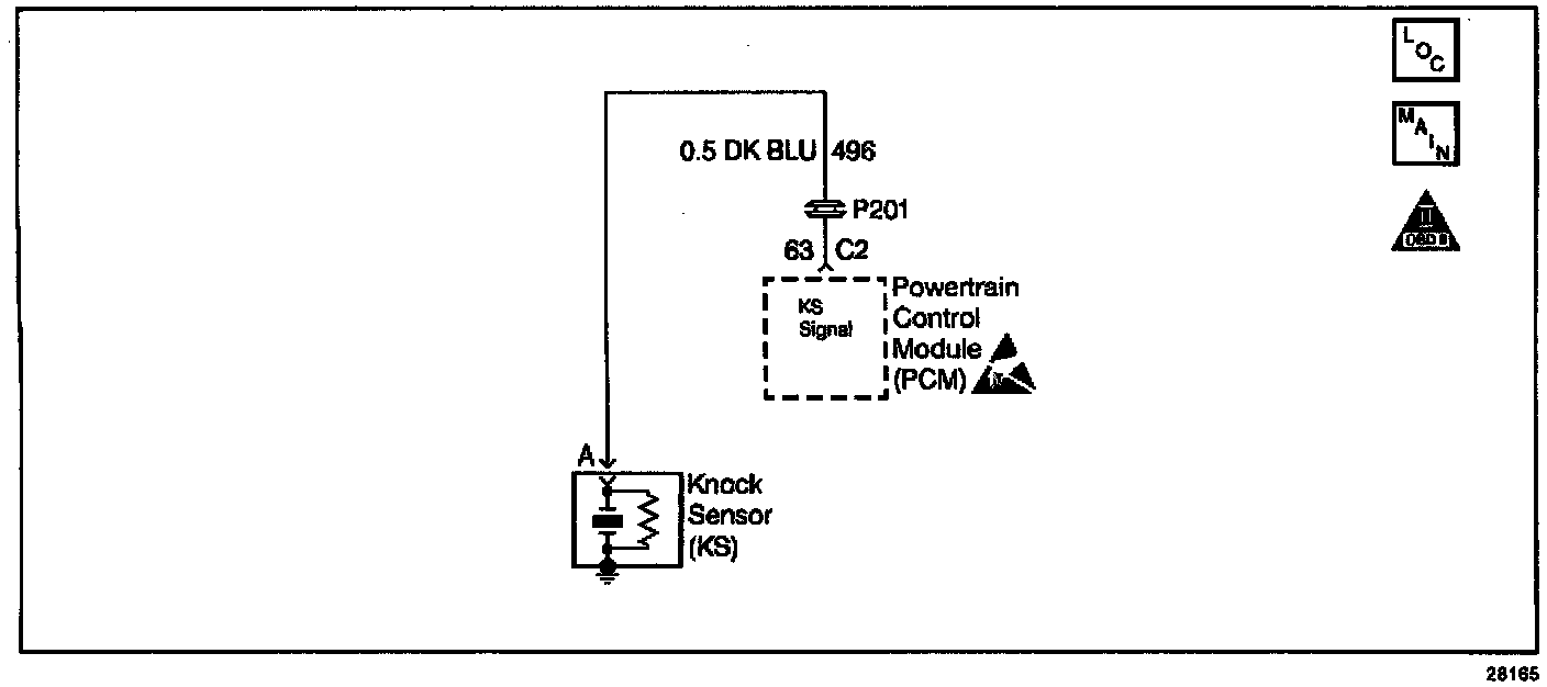 The knock sensors are used to detect engine detonation, allowing the PCM to retard Ignition Control (IC) spark timing based on the Knock Sensor (KS) signal being received. The knock sensors produce an AC signal which rides on a 5 volts DC signal supplied by the PCM. The signal amplitude and frequency is dependent upon the amount of knock being experienced.