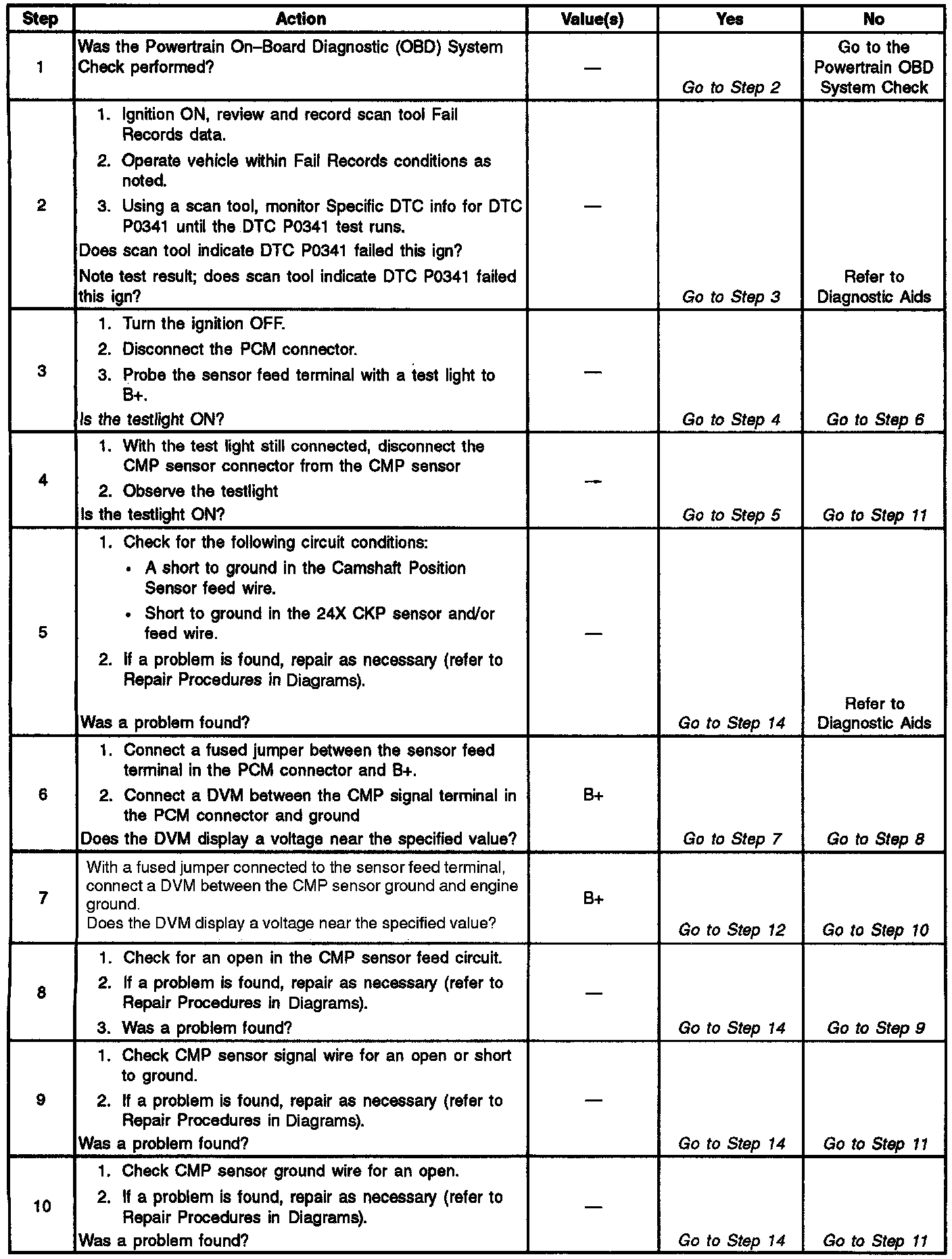 DTC P0341 CMP Sensor Circuit Performance (2 Of 2):