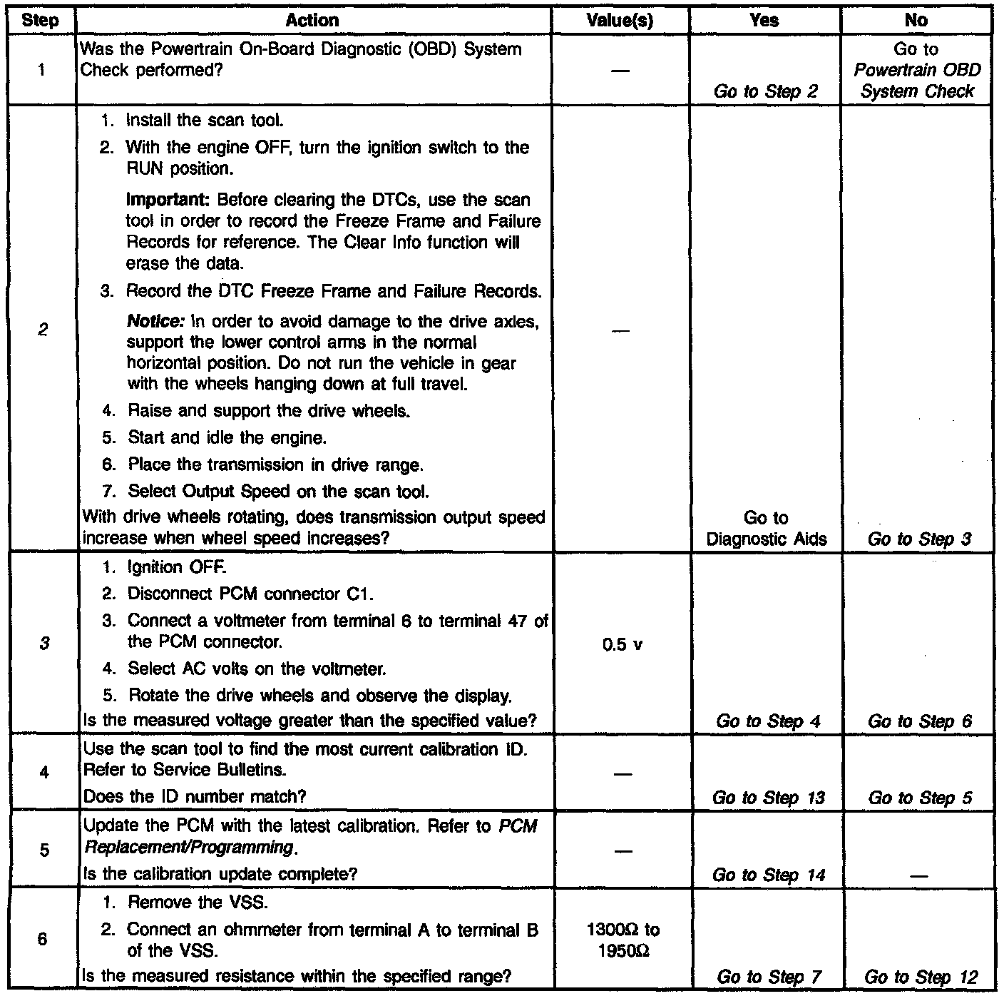 2. This Step verifies that the PCM is receiving a signal from the vehicle speed sensor.