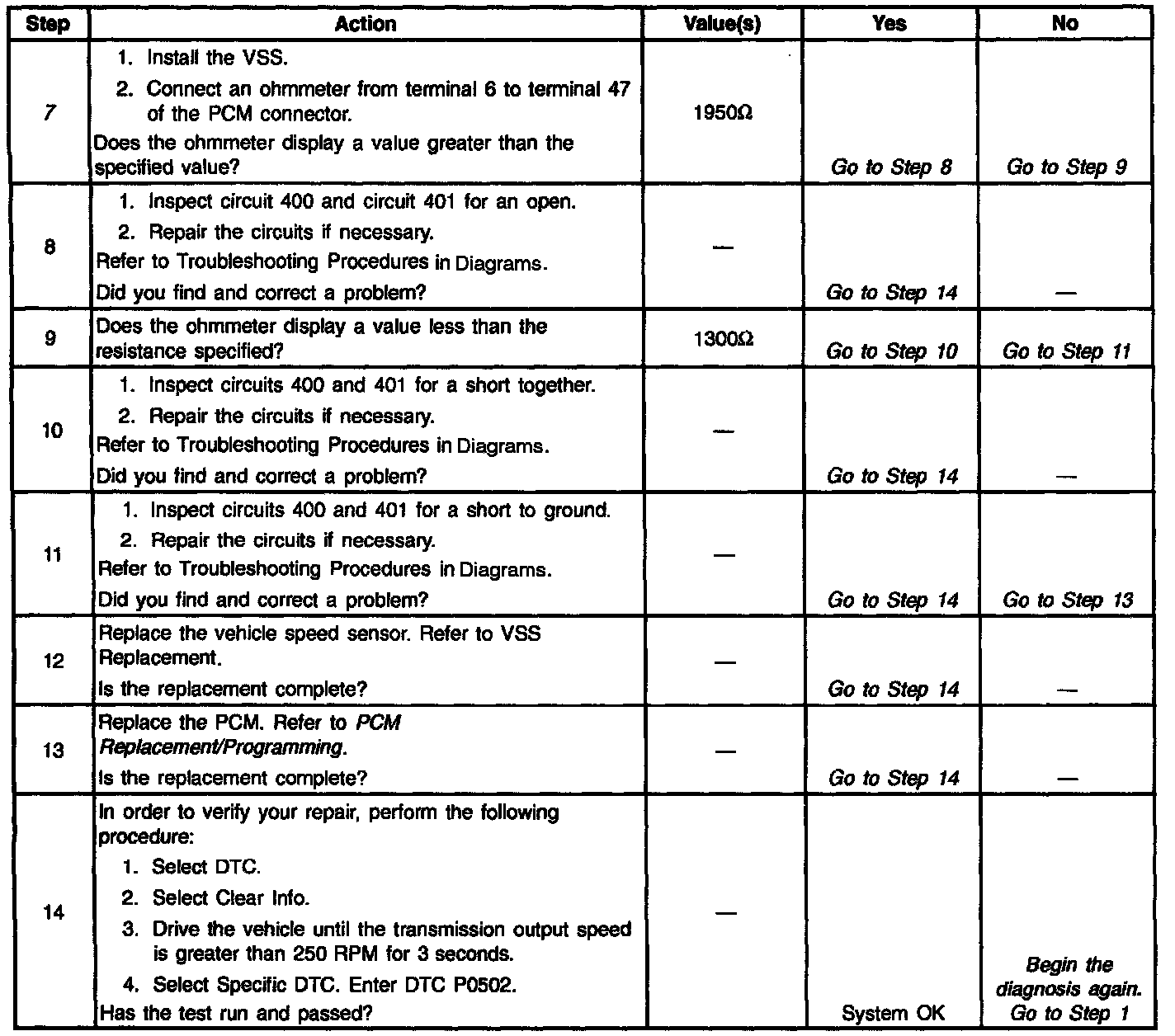 3. This Step verifies that there are no opens in the circuitry from the vehicle speed sensor to the PCM connector.