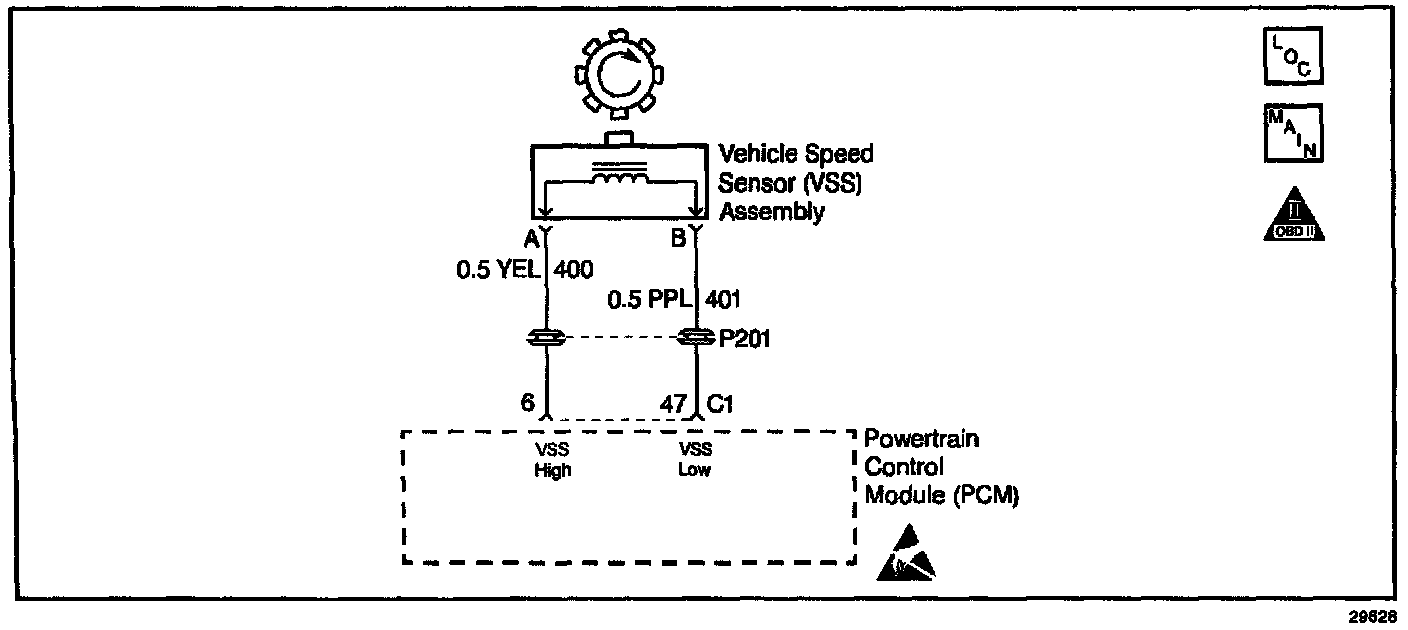 The PCM converts this AC voltage into a digital signal. The PCM uses the vehicle speed to determine the shift timing. the Torque Converter Clutch (TCC) apply and release, and the gear ratio calculations. The VSS voltage will vary from 0.5 volts AC at 100 RPM to more than 100 volts AC at 8000 RPM. The VSS resistance value Is between 1300 and 1950 ohms.