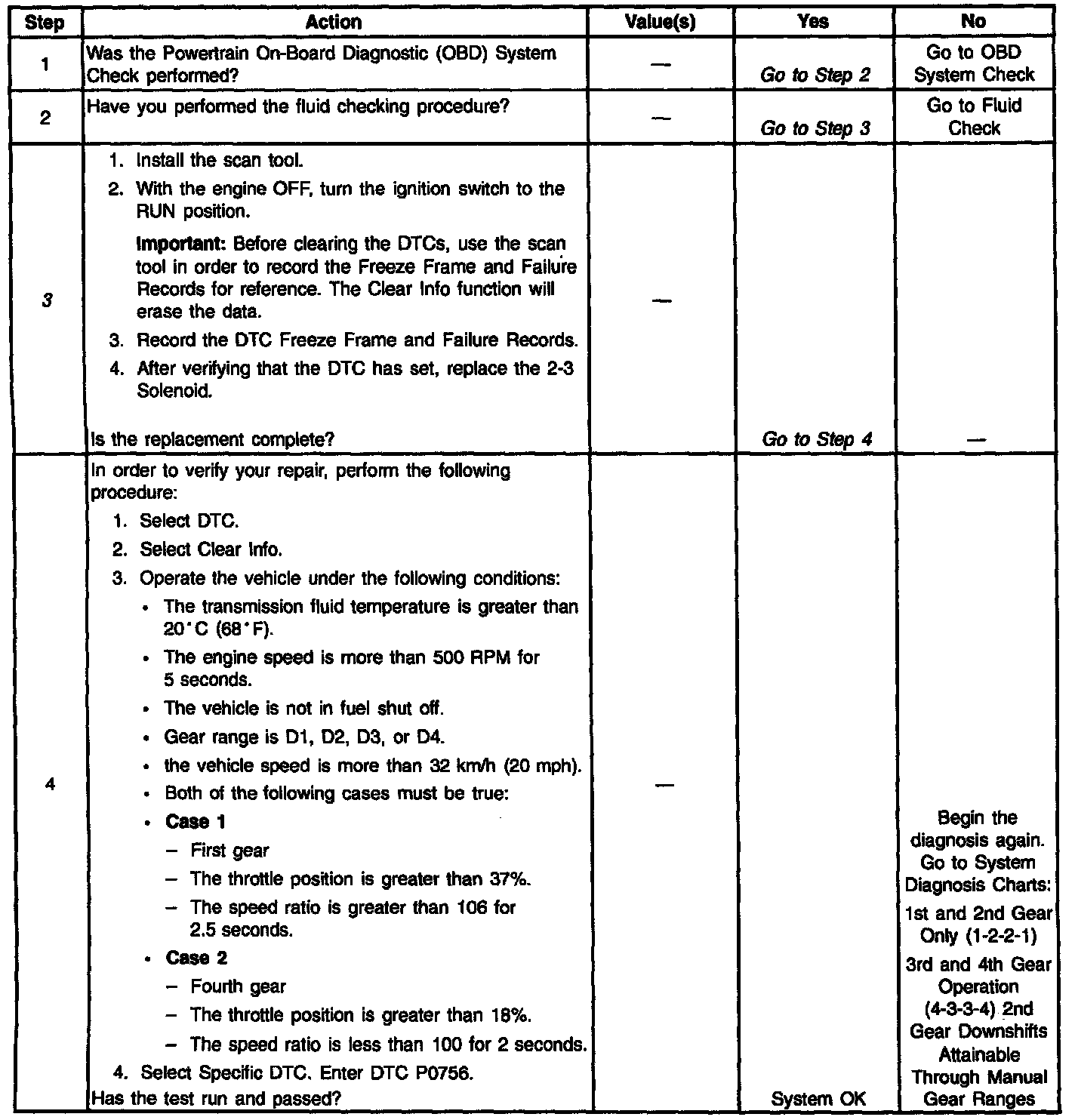 ^ Check for PRNDL DTC P0705. DTC P0705 affects transmission operation. This may set DTC P0756 falsely.